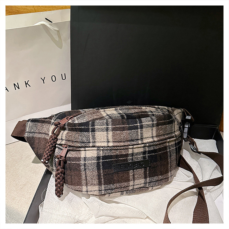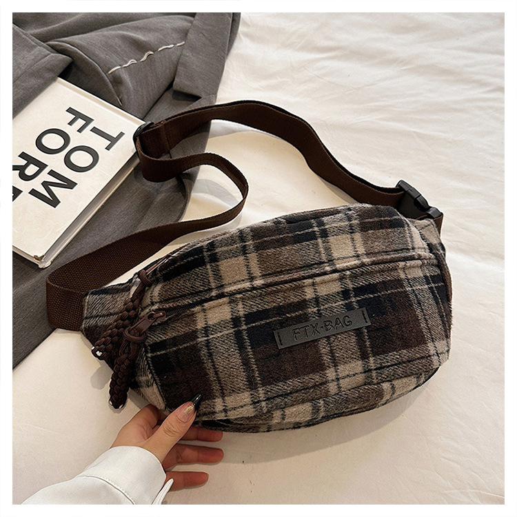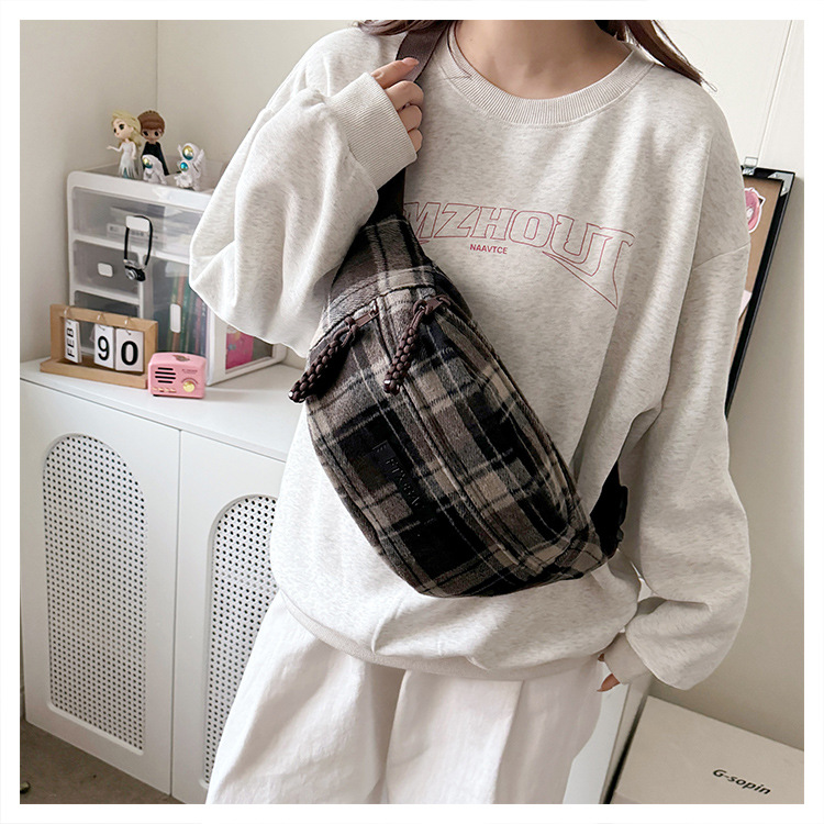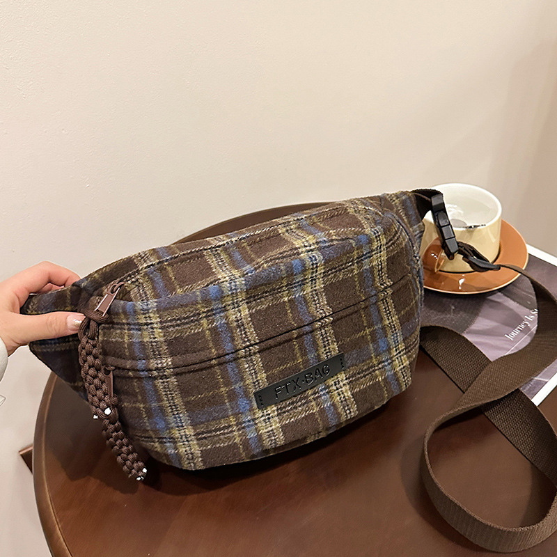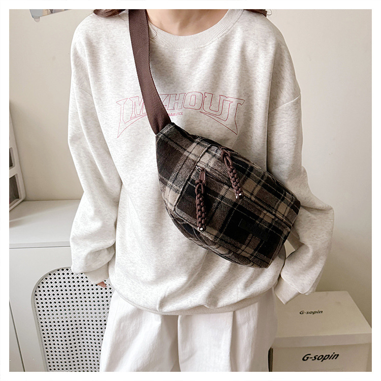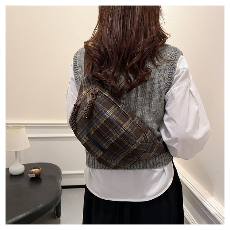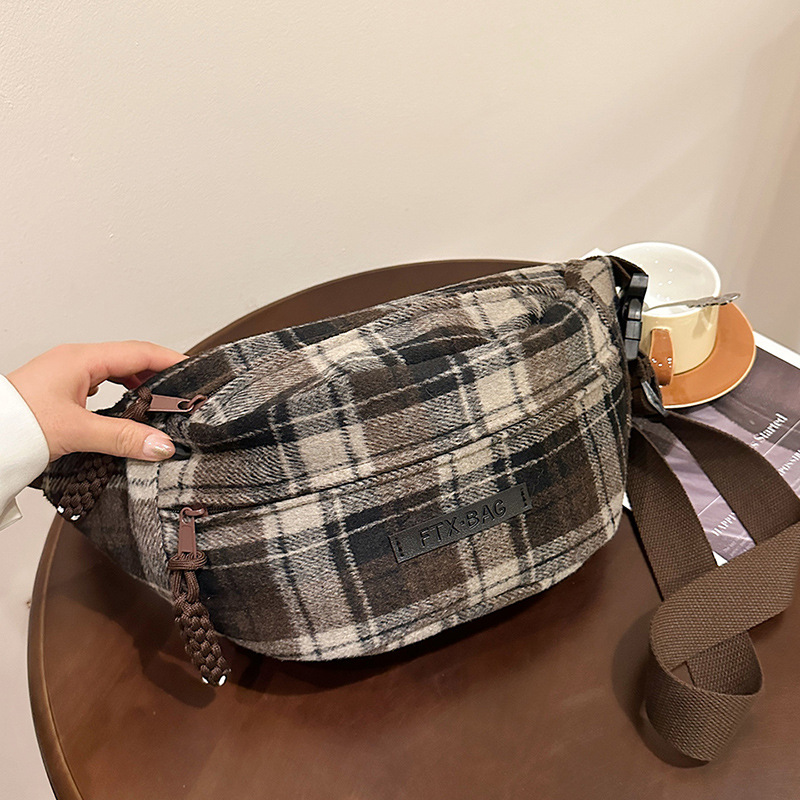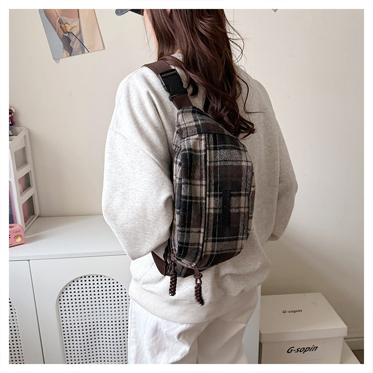가슴 가방 여자의 2024 새로운 유행 남자와 여자의 크로스 바디 가방 가을과 겨울 패션 올 매치 체크 어깨 가방 야외 승마 배낭스토어 가기