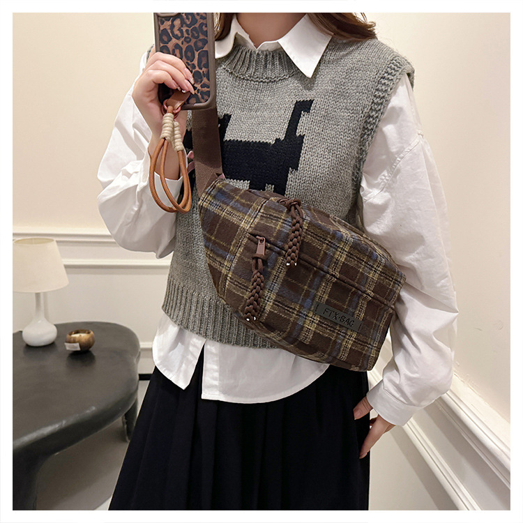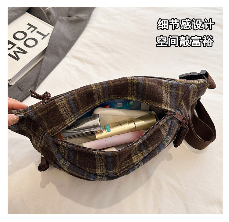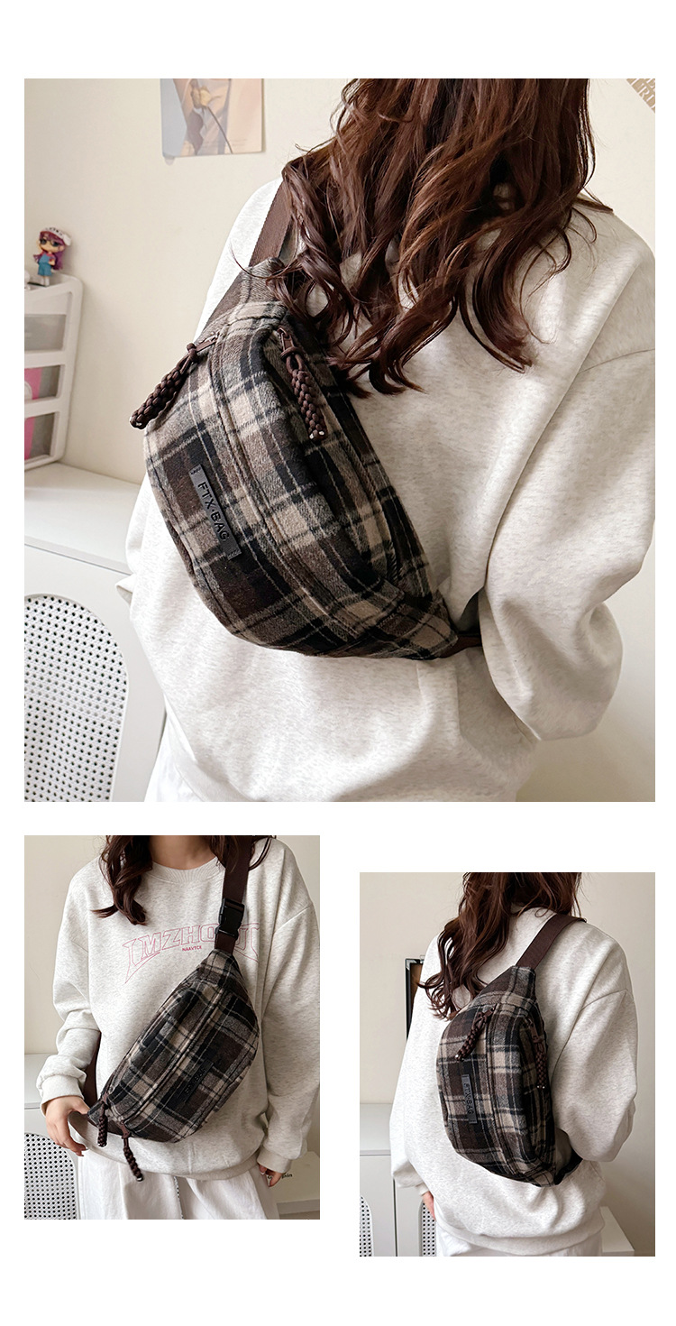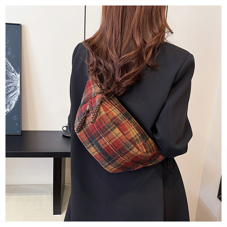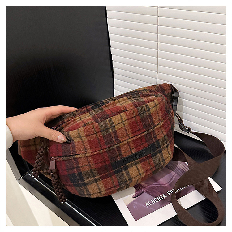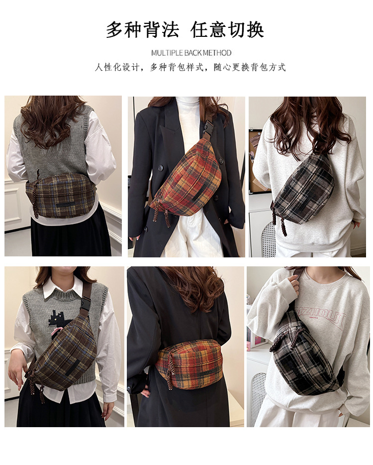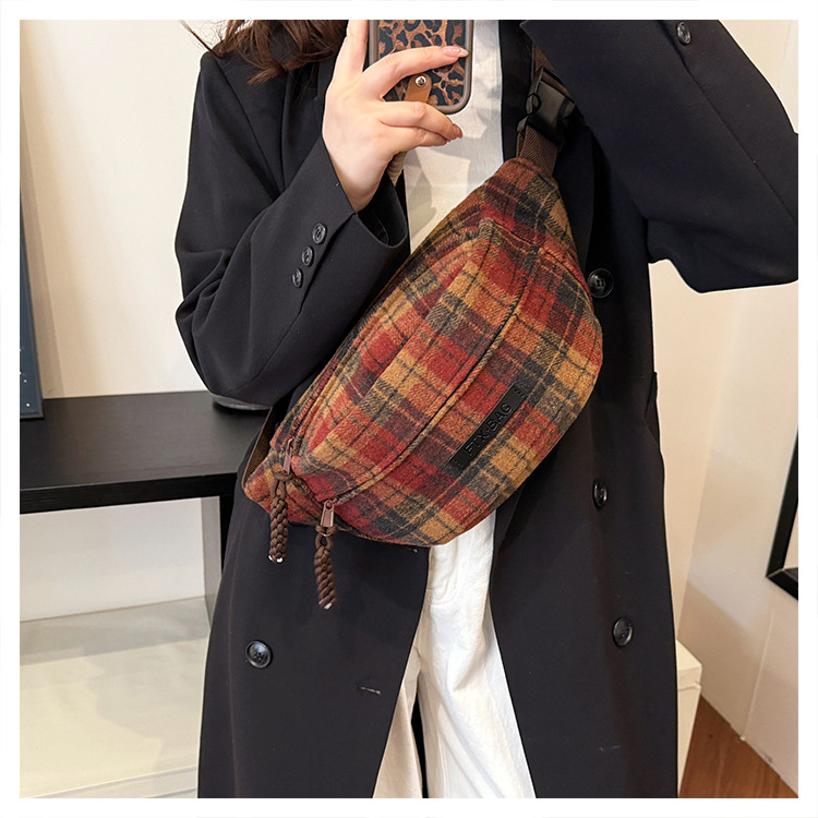 가슴 가방 여자의 2024 새로운 유행 남자와 여자의 크로스 바디 가방 가을과 겨울 패션 올 매치 체크 어깨 가방 야외 승마 배낭스토어 가기