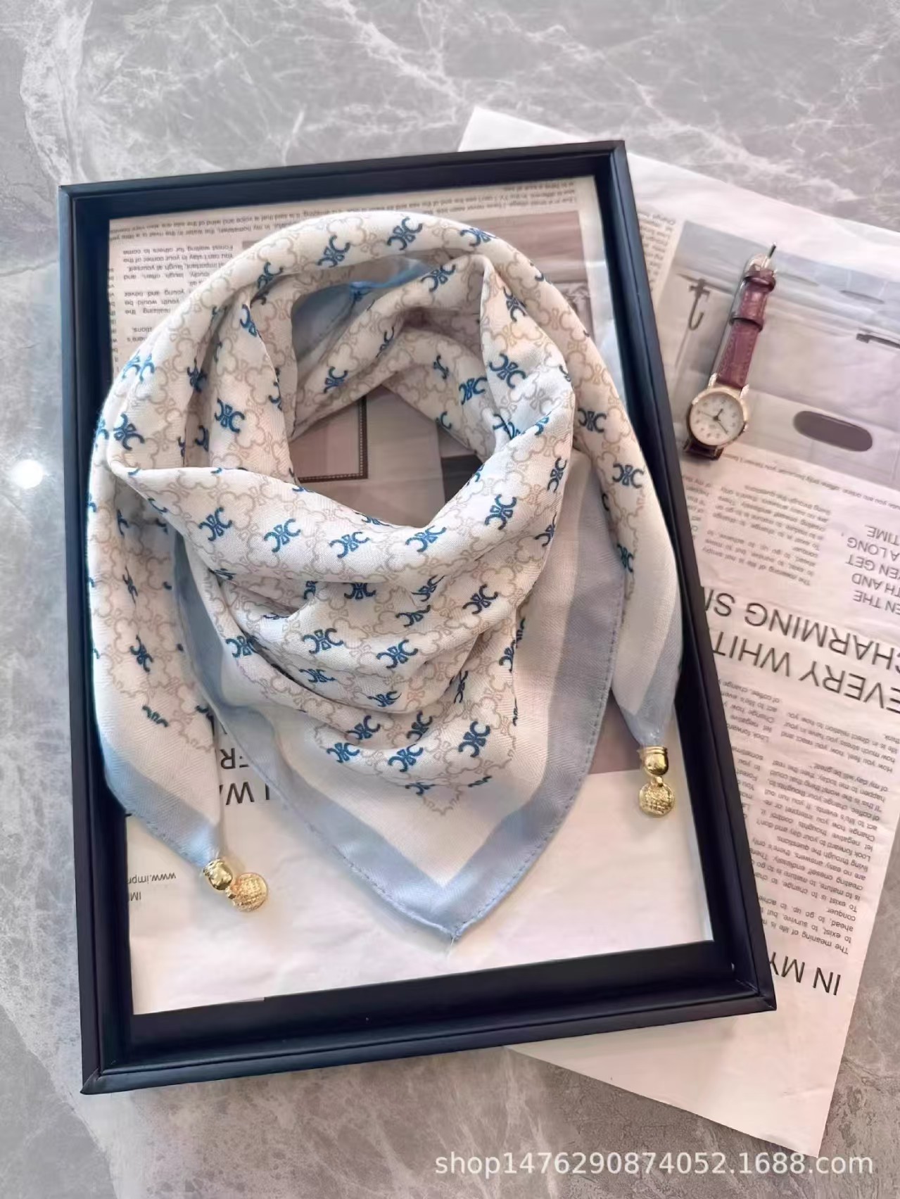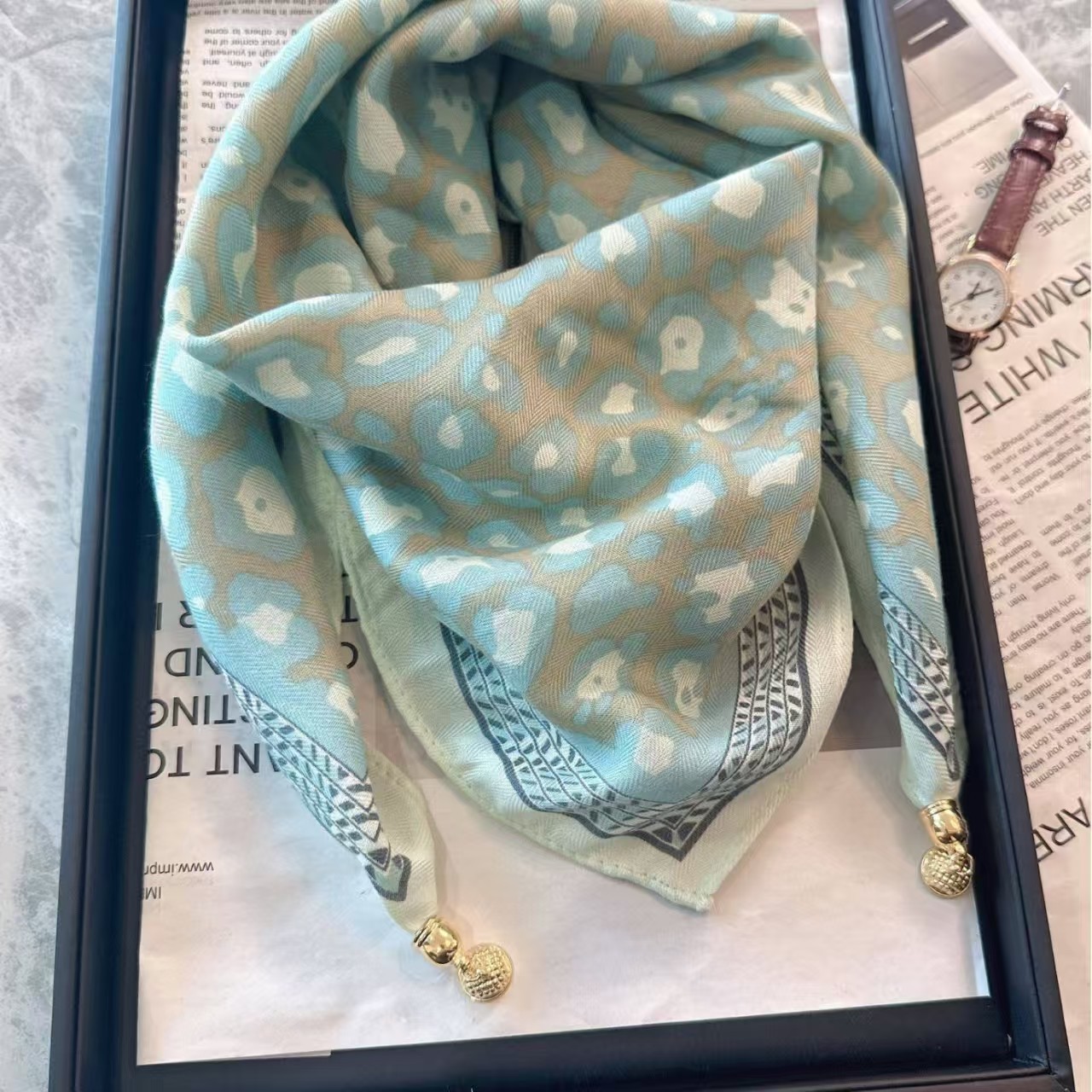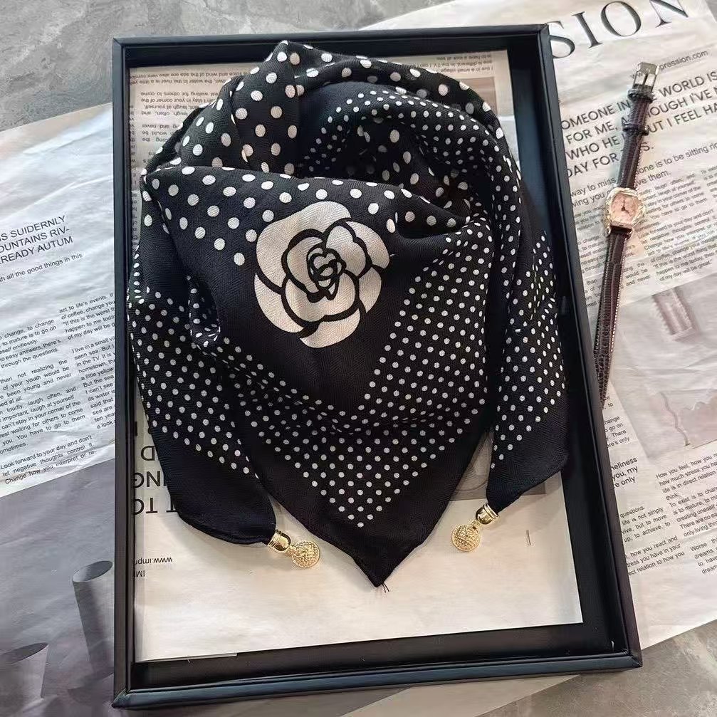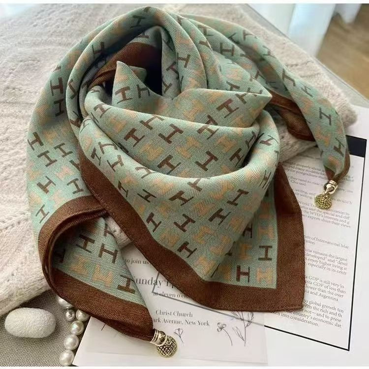 2024 새로운 스타일 따뜻한 광장 스카프 마그네틱 버클 삼각형 실크 스카프 면화 스카프 여성의 봄 가을과 겨울 서양 스타일 스카프 우아한 올 매치스토어 가기
