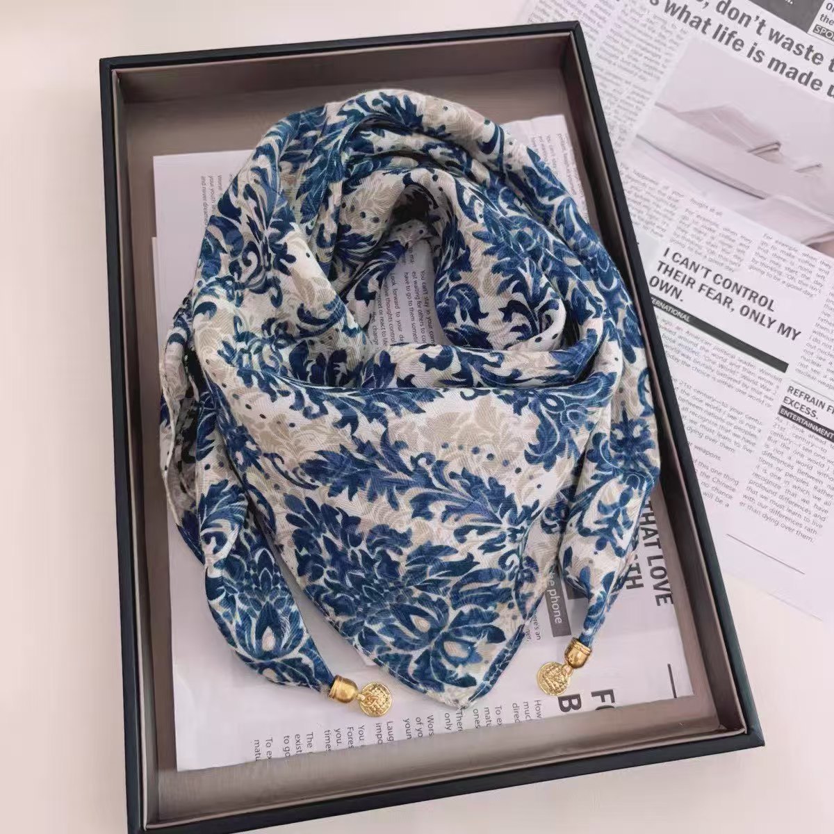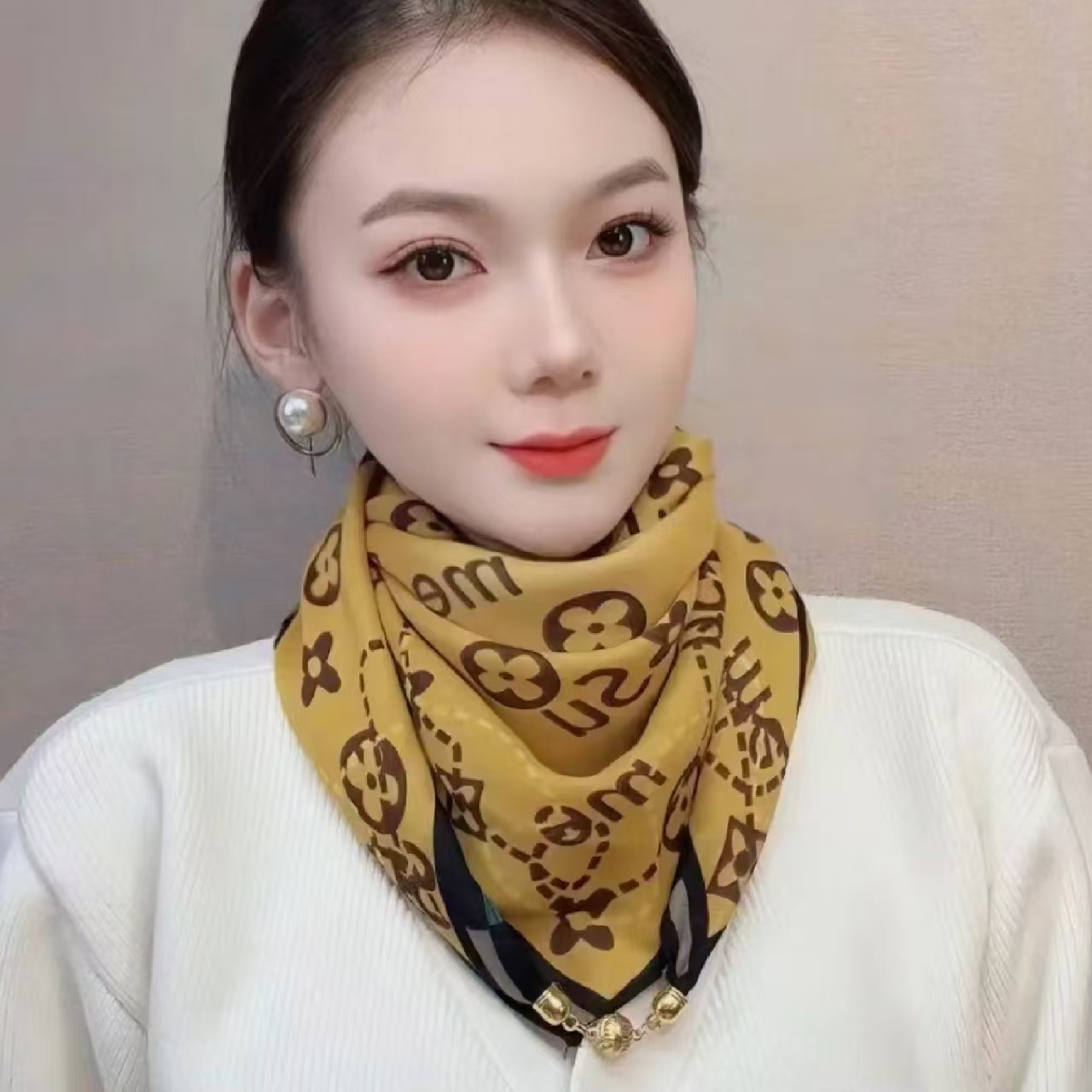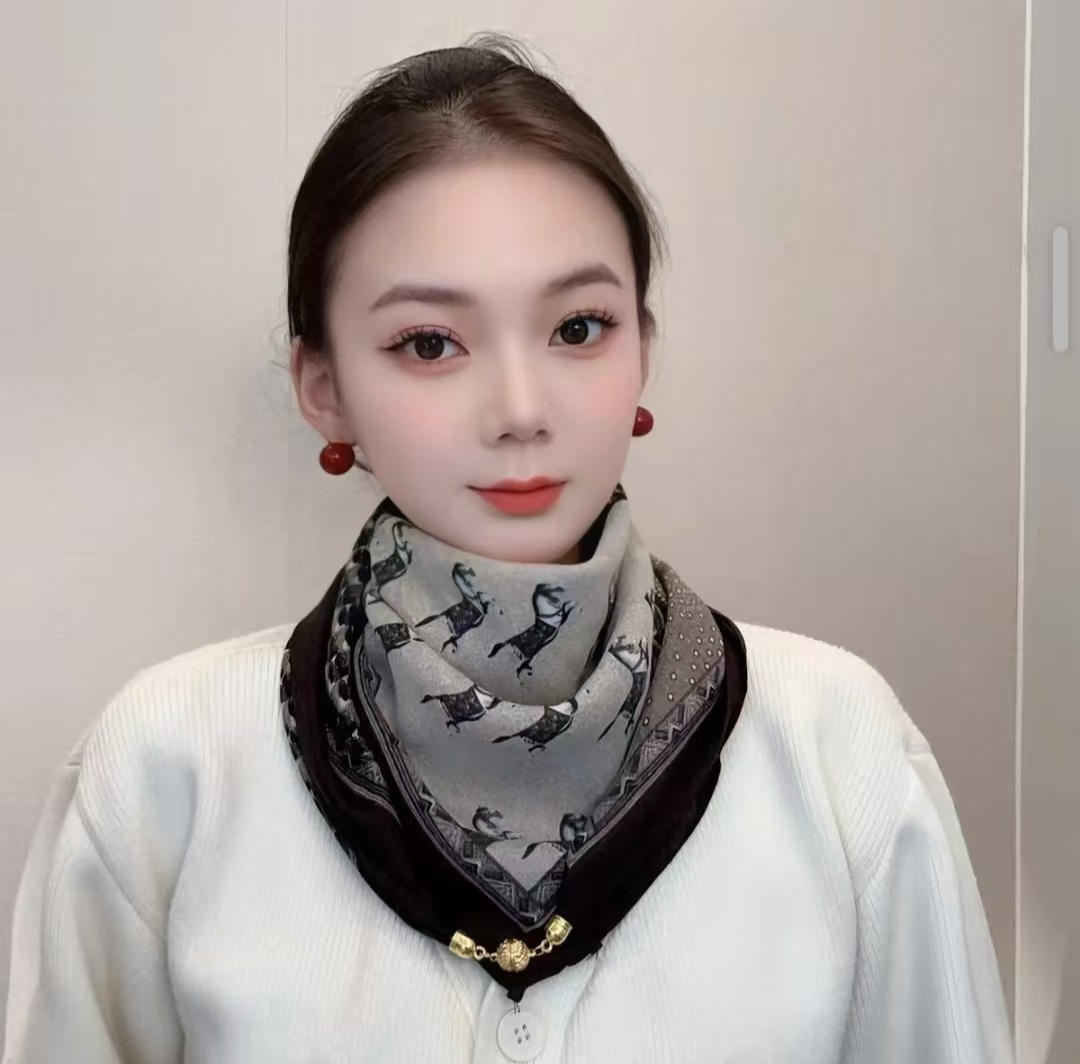 2024 새로운 스타일 따뜻한 광장 스카프 마그네틱 버클 삼각형 실크 스카프 면화 스카프 여성의 봄 가을과 겨울 서양 스타일 스카프 우아한 올 매치