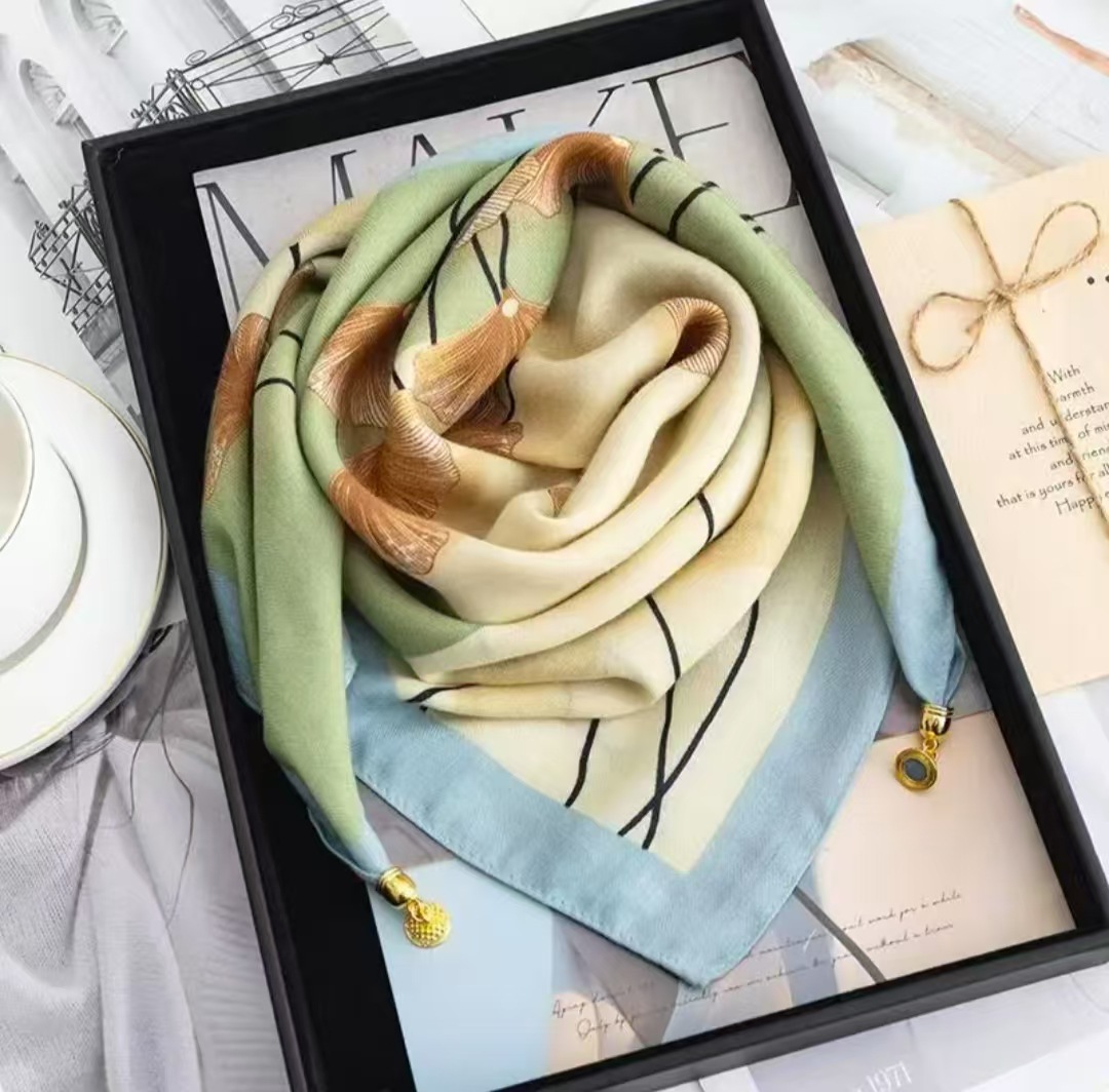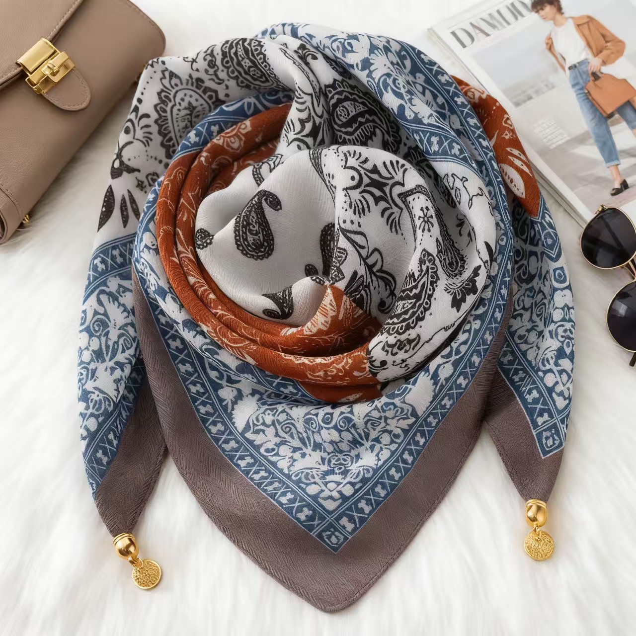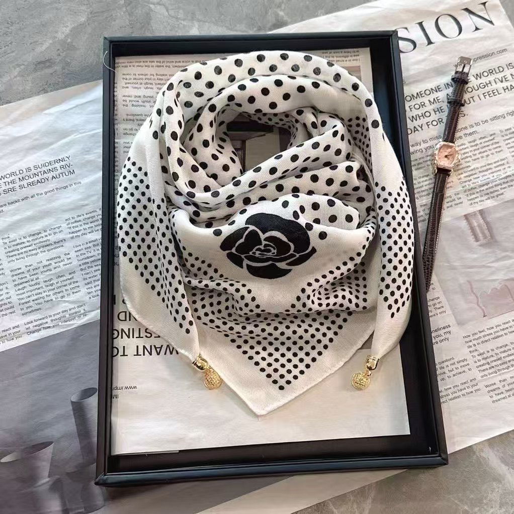 2024 새로운 스타일 따뜻한 광장 스카프 마그네틱 버클 삼각형 실크 스카프 면화 스카프 여성의 봄 가을과 겨울 서양 스타일 스카프 우아한 올 매치