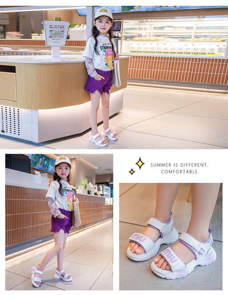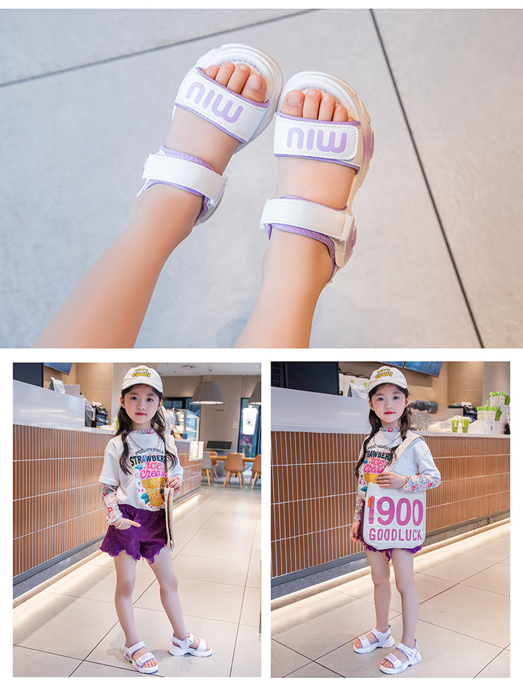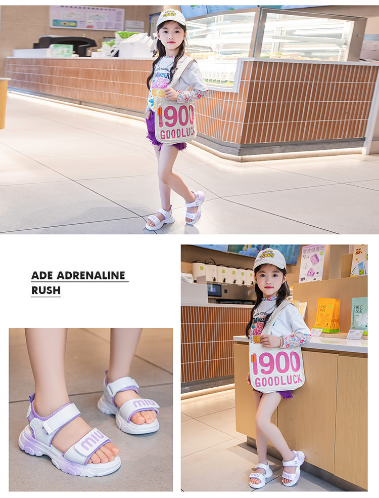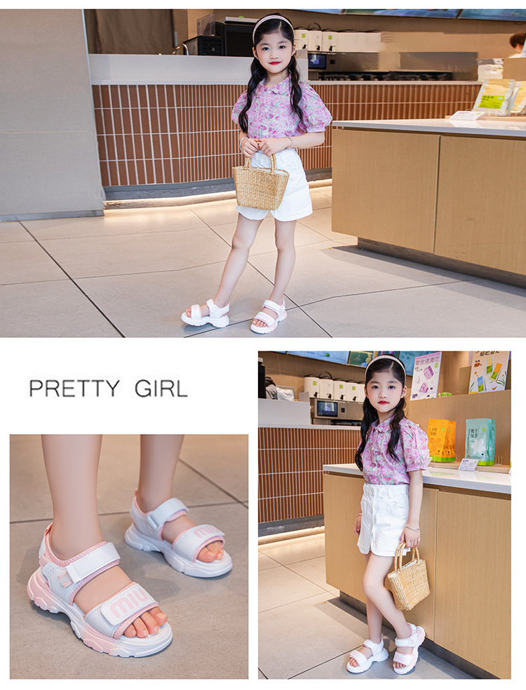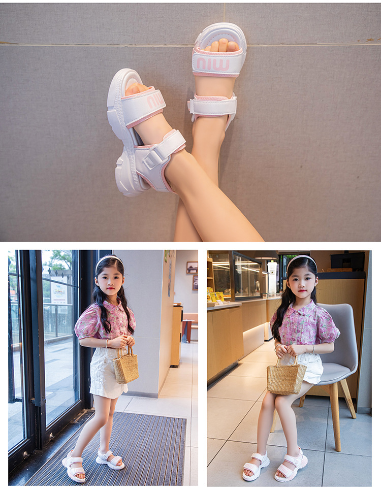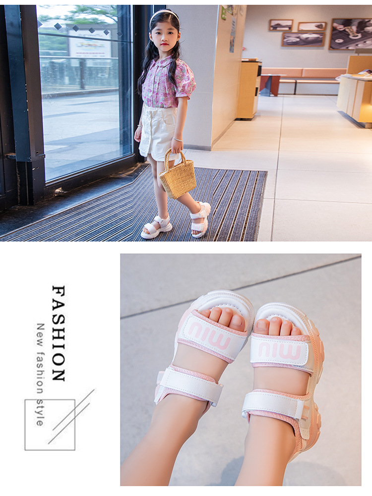 여자 스포츠 샌들 2024 여름 새로운 패션 캐주얼 비치 신발 소녀 공주 신발 소프트 단독 어린이 신발스토어 가기