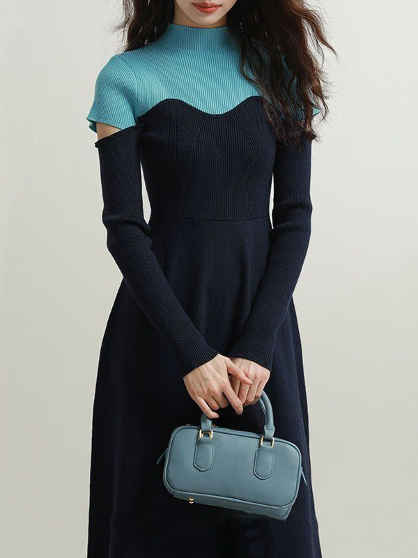 프랑스 스타일의 콘트라스트 할로우 아웃 니트 원피스 여성의 2024 가을 및 겨울 새로운 하이 엔드 슬림 핏 원피스 패션스토어 가기