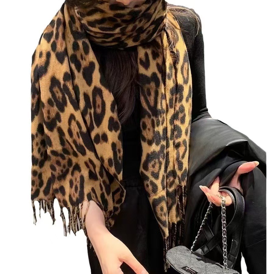 새로운 가을과 겨울 레오파드 무늬 두꺼운 따뜻한 유럽과 미국 한국 패션 매일 캐시미어 술 스카프 목도리스토어 가기