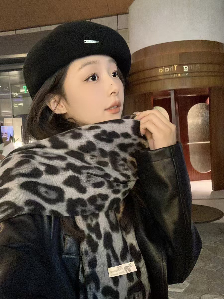 새로운 가을과 겨울 레오파드 무늬 두꺼운 따뜻한 유럽과 미국 한국 패션 매일 캐시미어 술 스카프 목도리