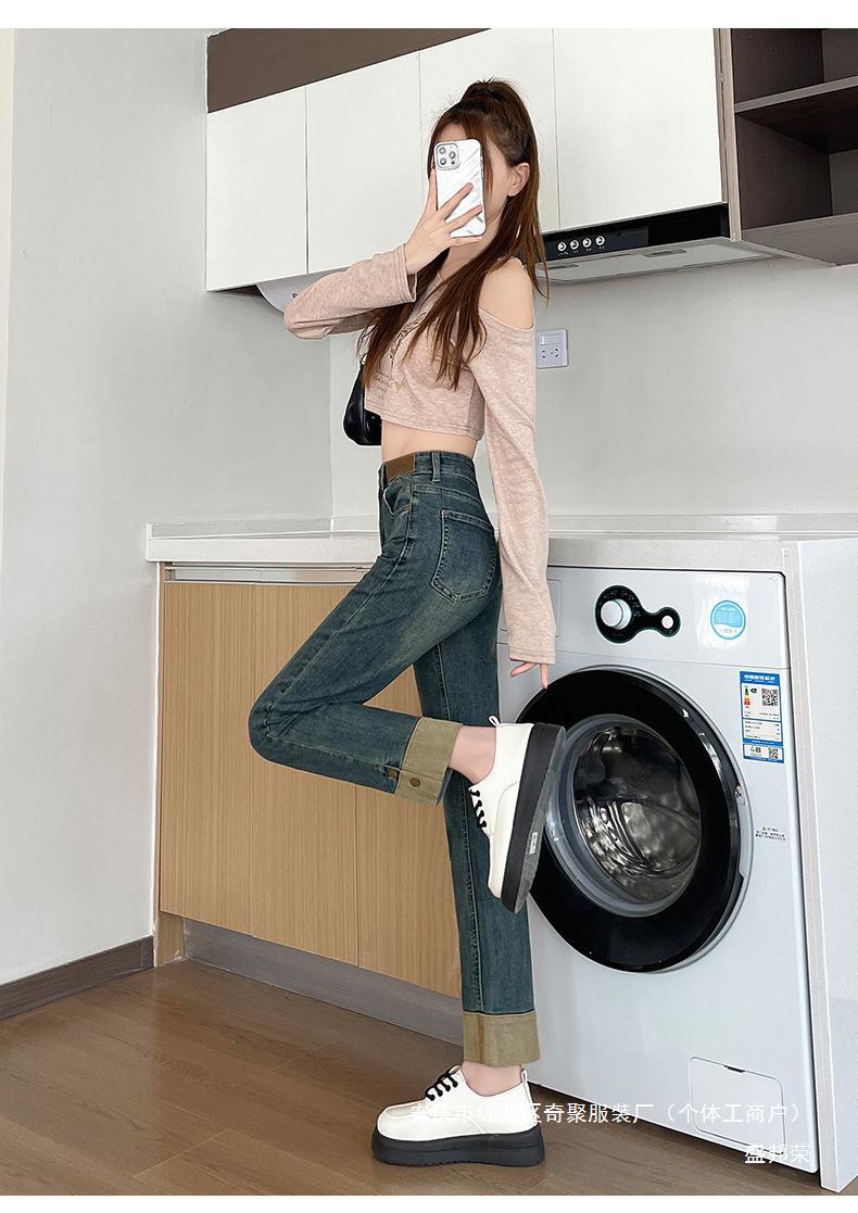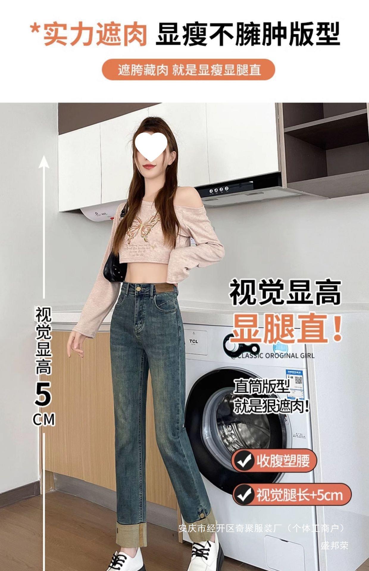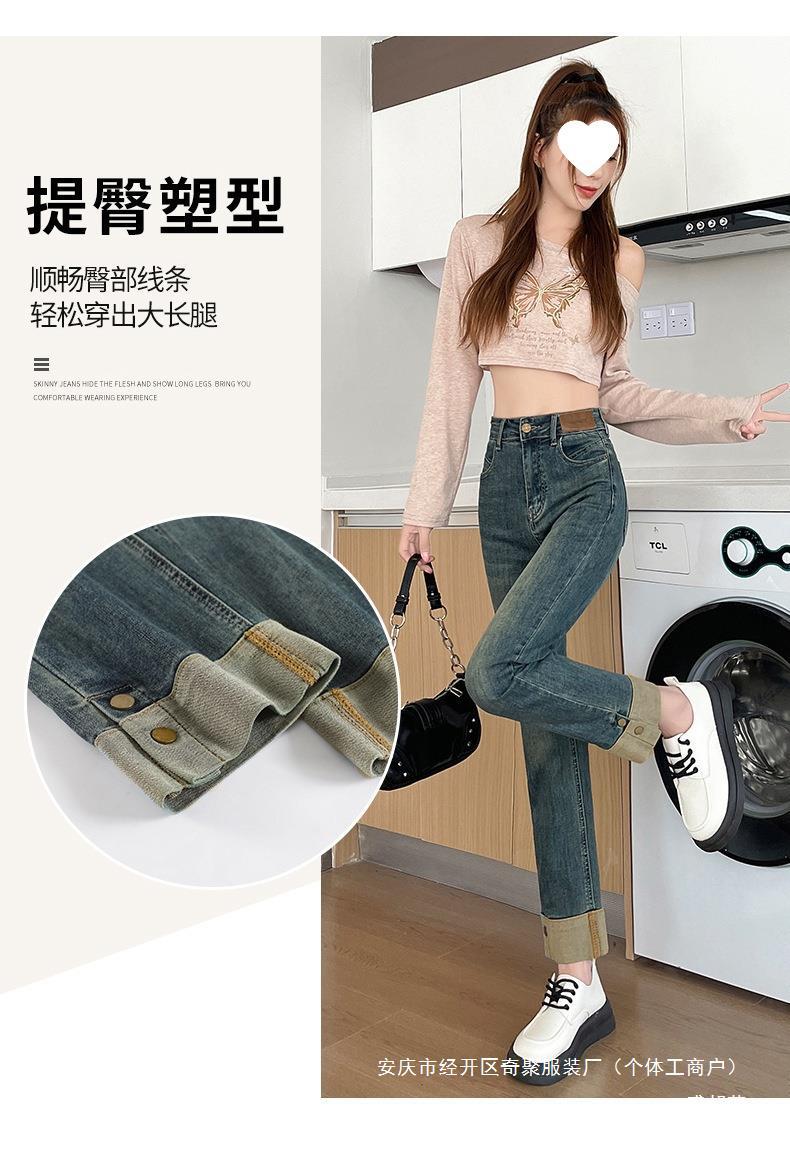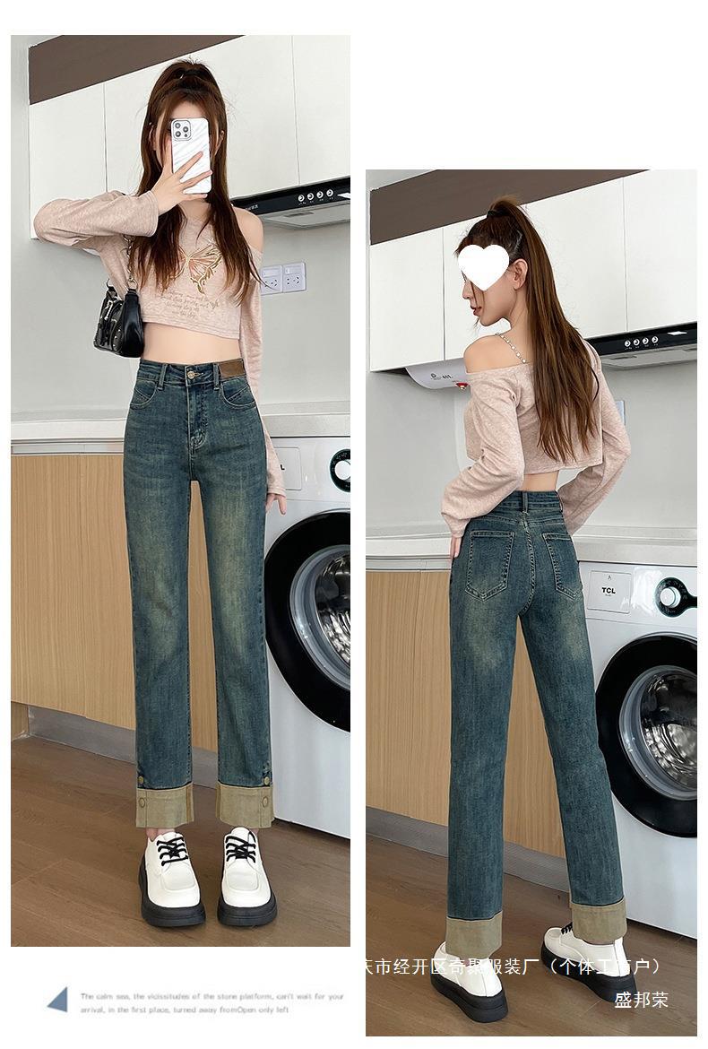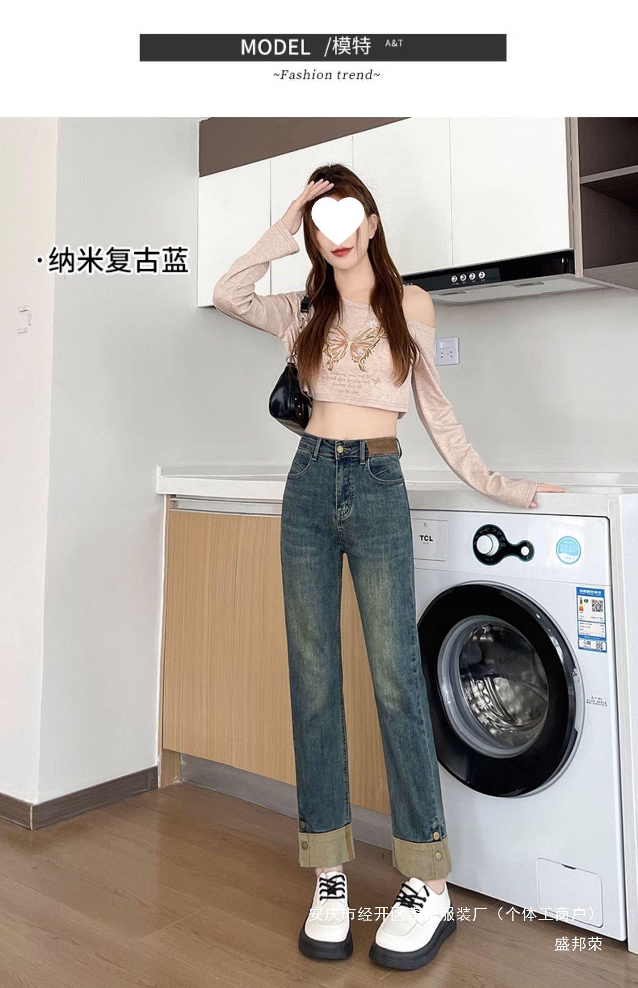 공장 바게트 새로운 청바지 여성 연기 튜브 작은 복고풍 가을 높은 허리 슬림 스트레이트 팬츠 주문스토어 가기