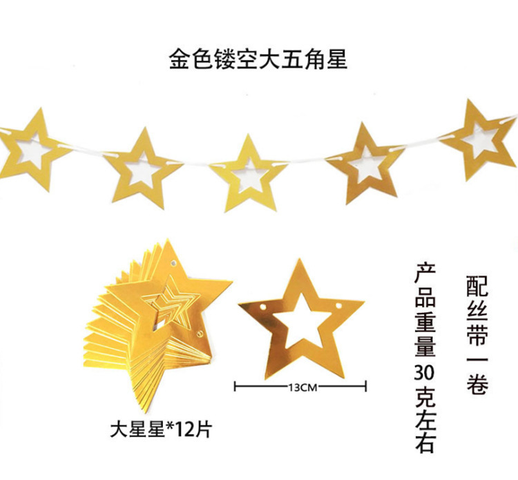 중공 다섯개 별 생일 축하 스타 꽃 거울 벽 축제 장식 소품 파티 파티 깃발