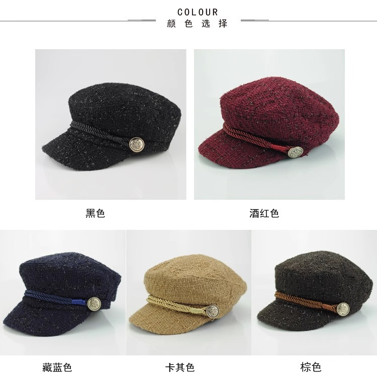 샤오샹 스타일 밀리터리 캡 베레모 여성 한국 패션 가을과 겨울날 모자 여성 팔각형 모자 영국 빈티지 올 매치 캡