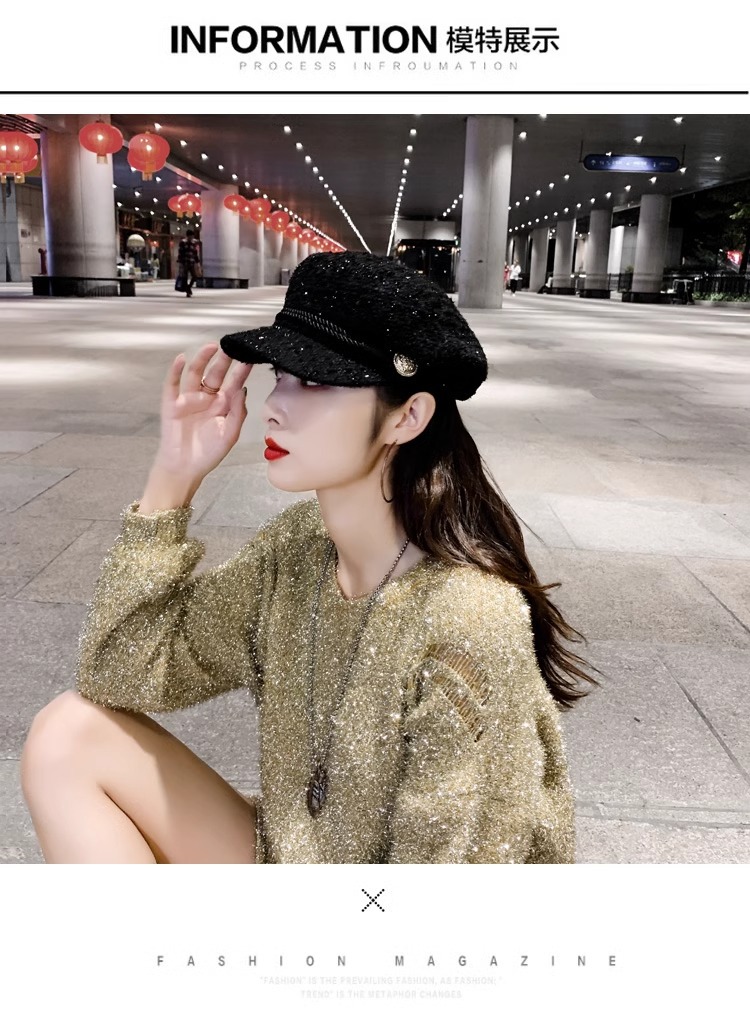 샤오샹 스타일 밀리터리 캡 베레모 여성 한국 패션 가을과 겨울날 모자 여성 팔각형 모자 영국 빈티지 올 매치 캡스토어 가기