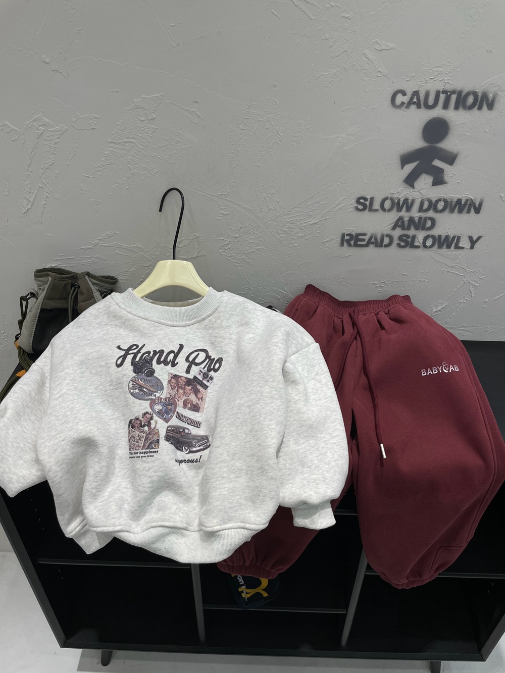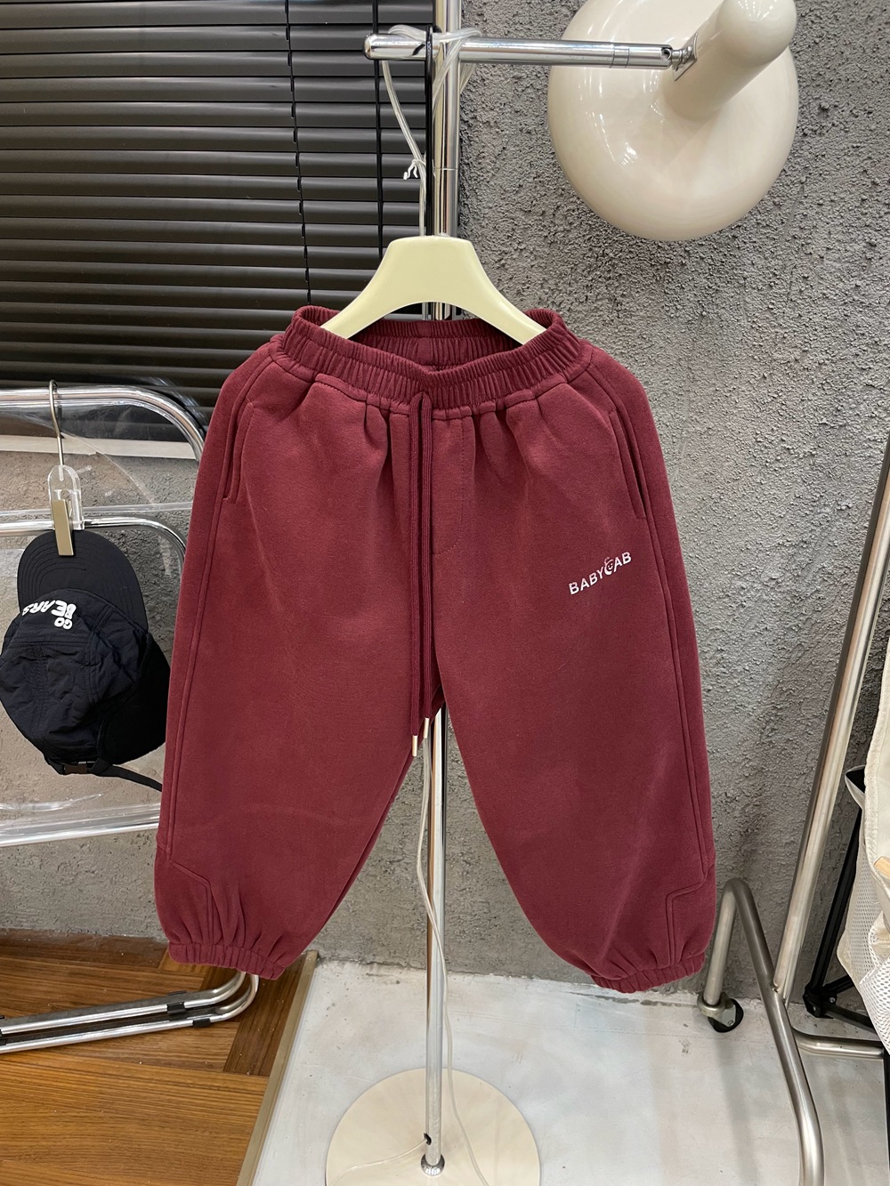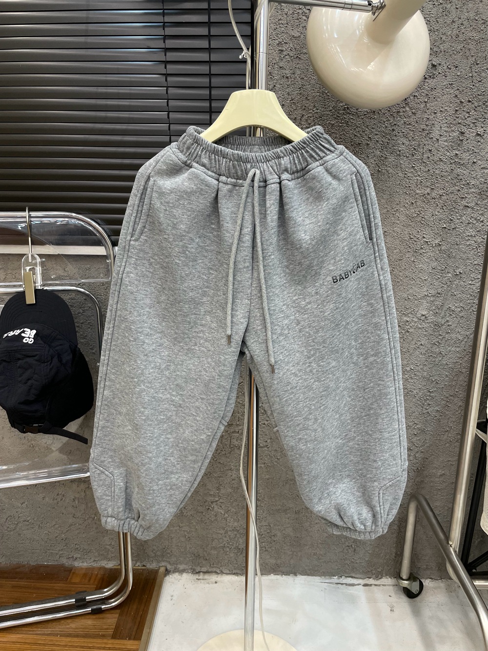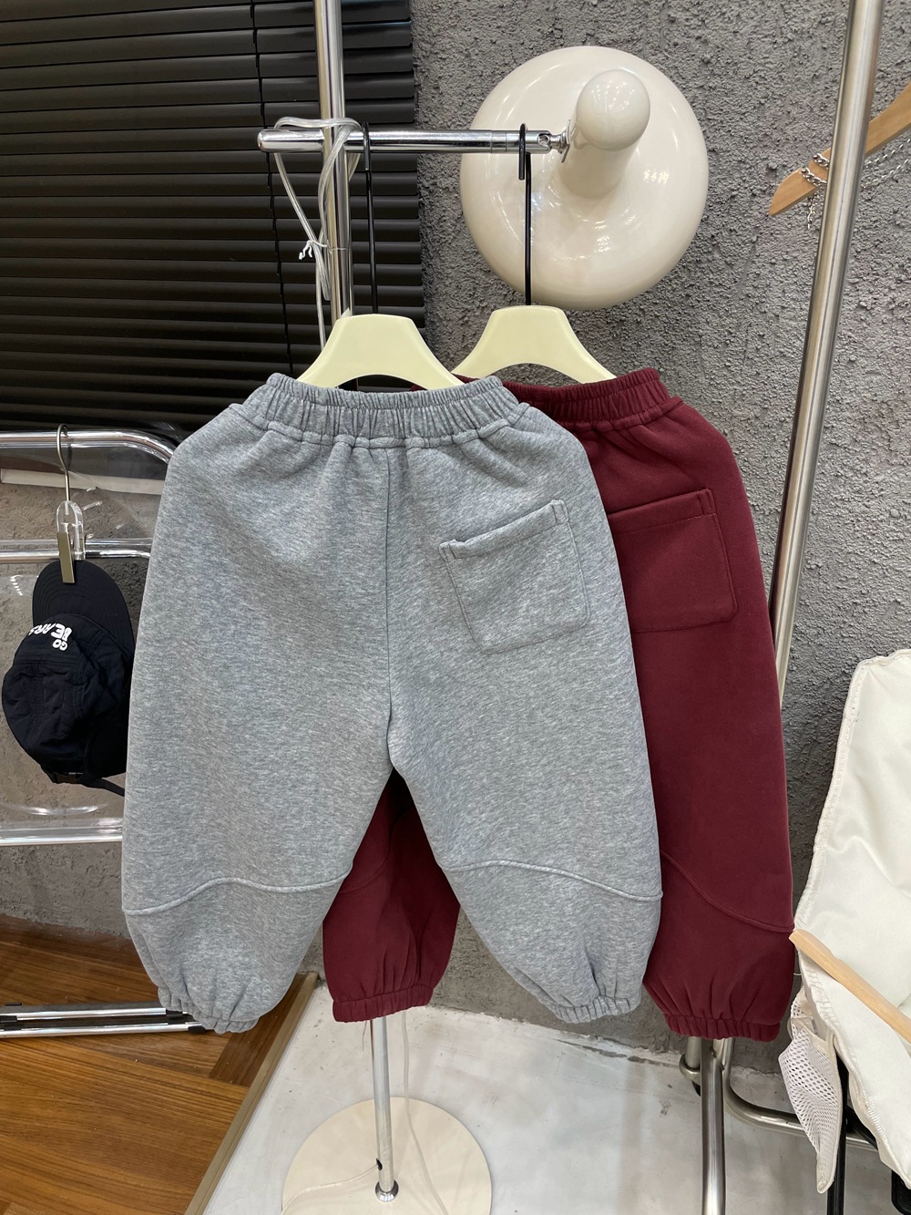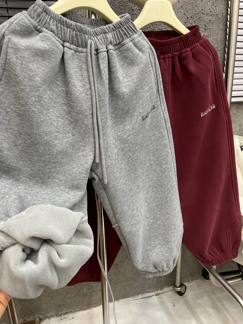작은 편지 인쇄 기모 운동복 원피스 벨벳 스포츠 바지 따뜻한 2024 겨울 뉴 보이즈 올 매치 롱 바지스토어 가기