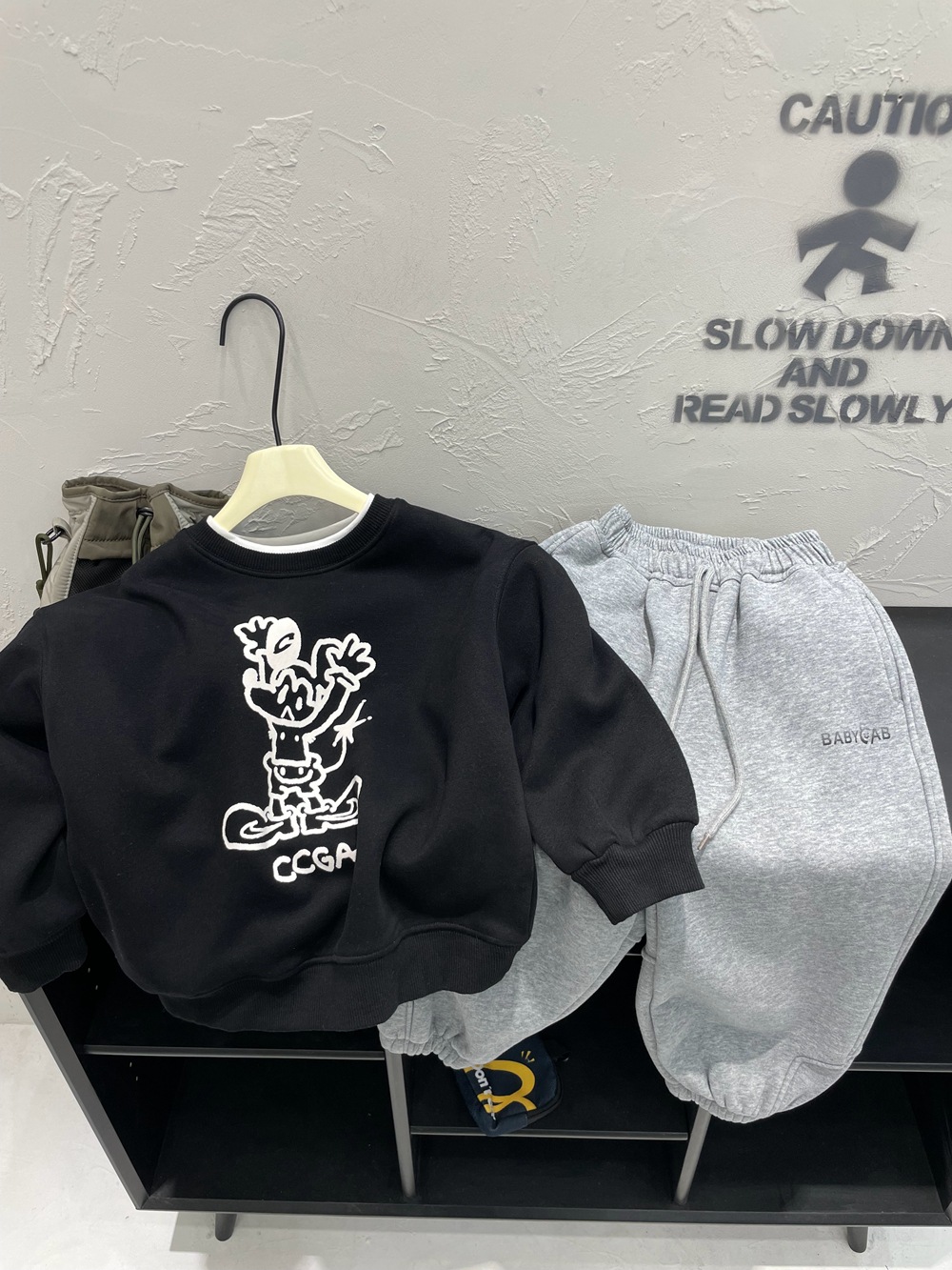 작은 편지 인쇄 기모 운동복 원피스 벨벳 스포츠 바지 따뜻한 2024 겨울 뉴 보이즈 올 매치 롱 바지