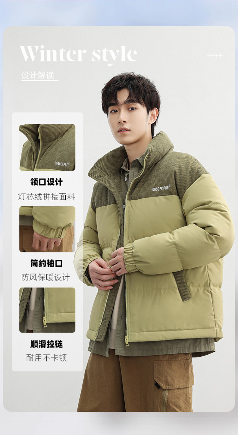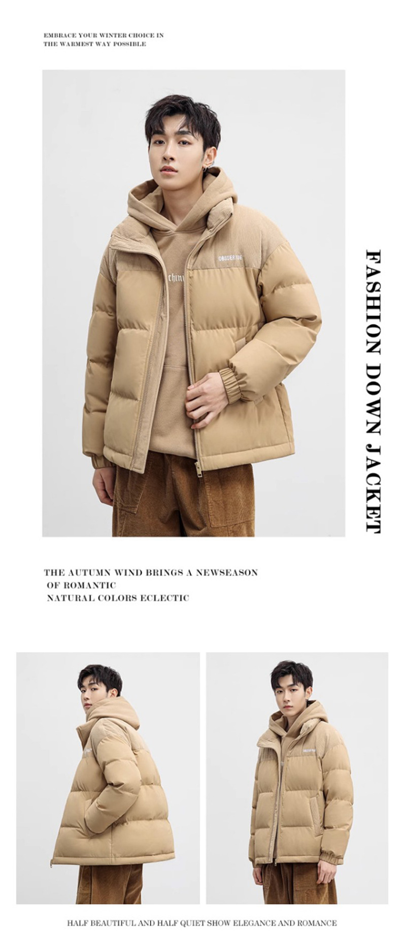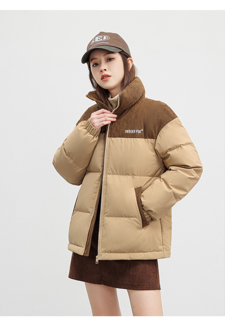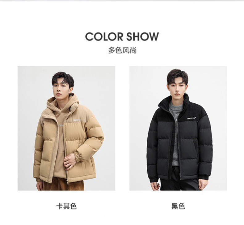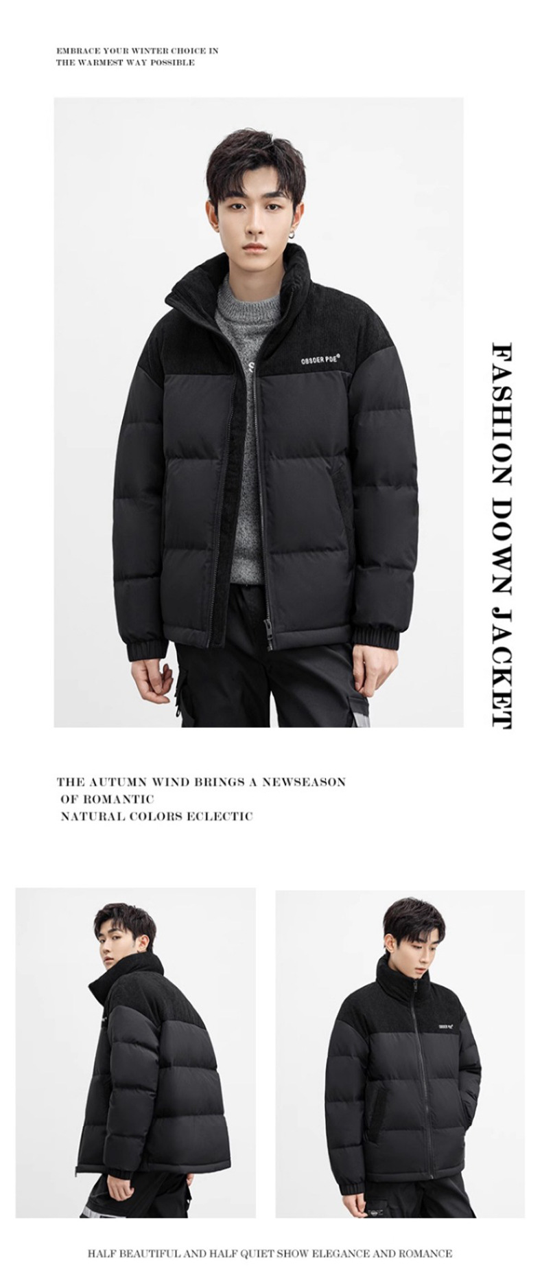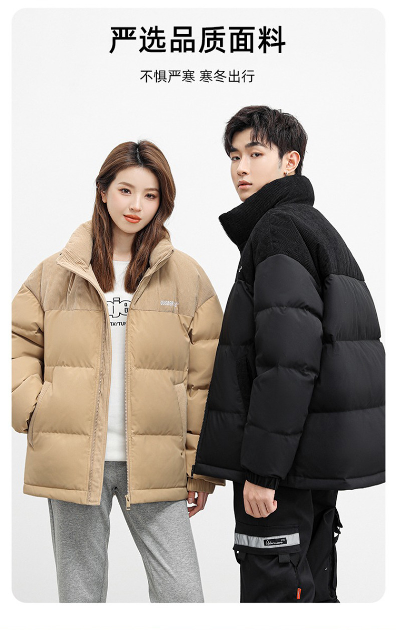 남성과 여성을위한 새로운 수직 칼라 다운 재킷 화이트 덕 다운 재킷 따뜻한 겨울 커플 패션 올 매치 컬러 콘트라스트 다운 재킷스토어 가기