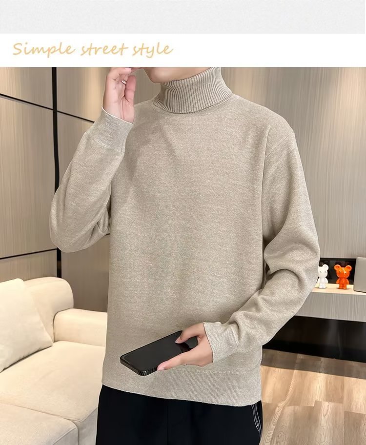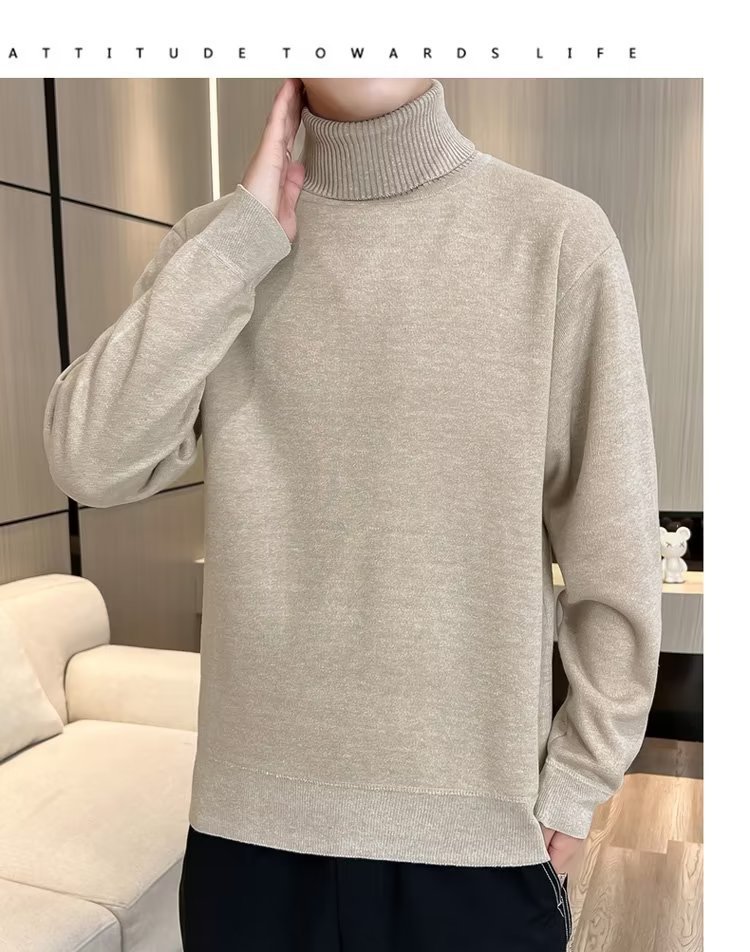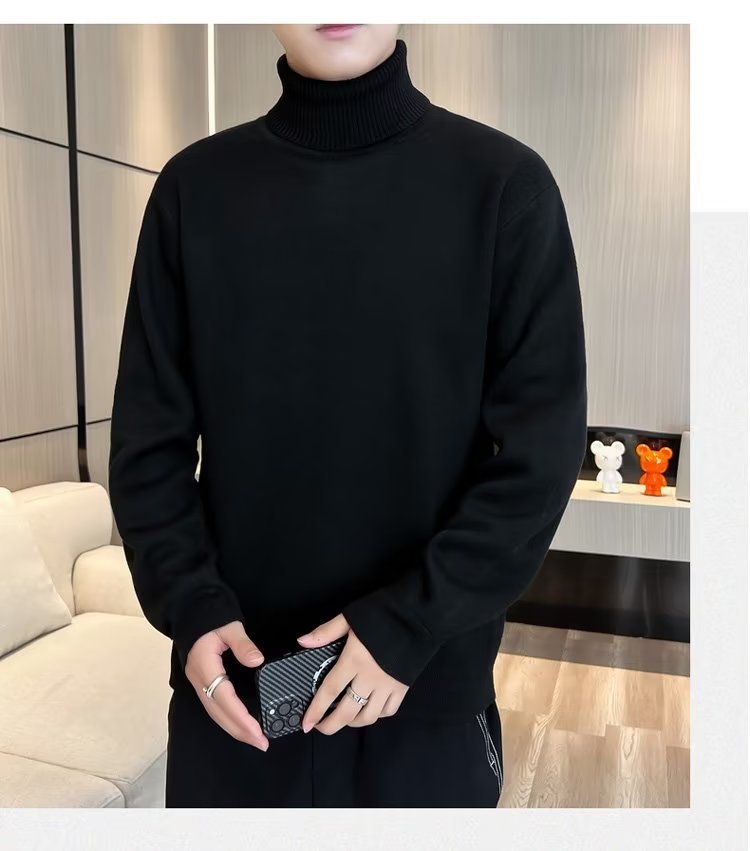터틀넥 스웨터 남자 가을 겨울 기모 두껍게 새로운 한국 패셔너블 슬림 핏 남성 보팅 스웨터 트렌디 남성복