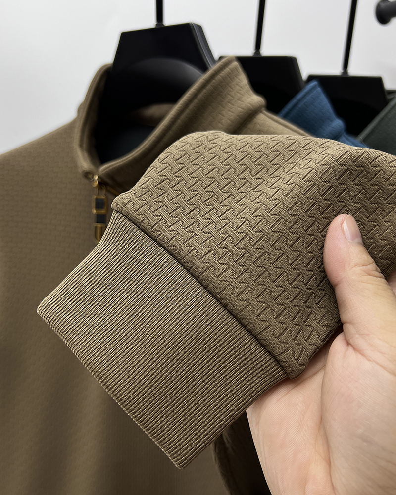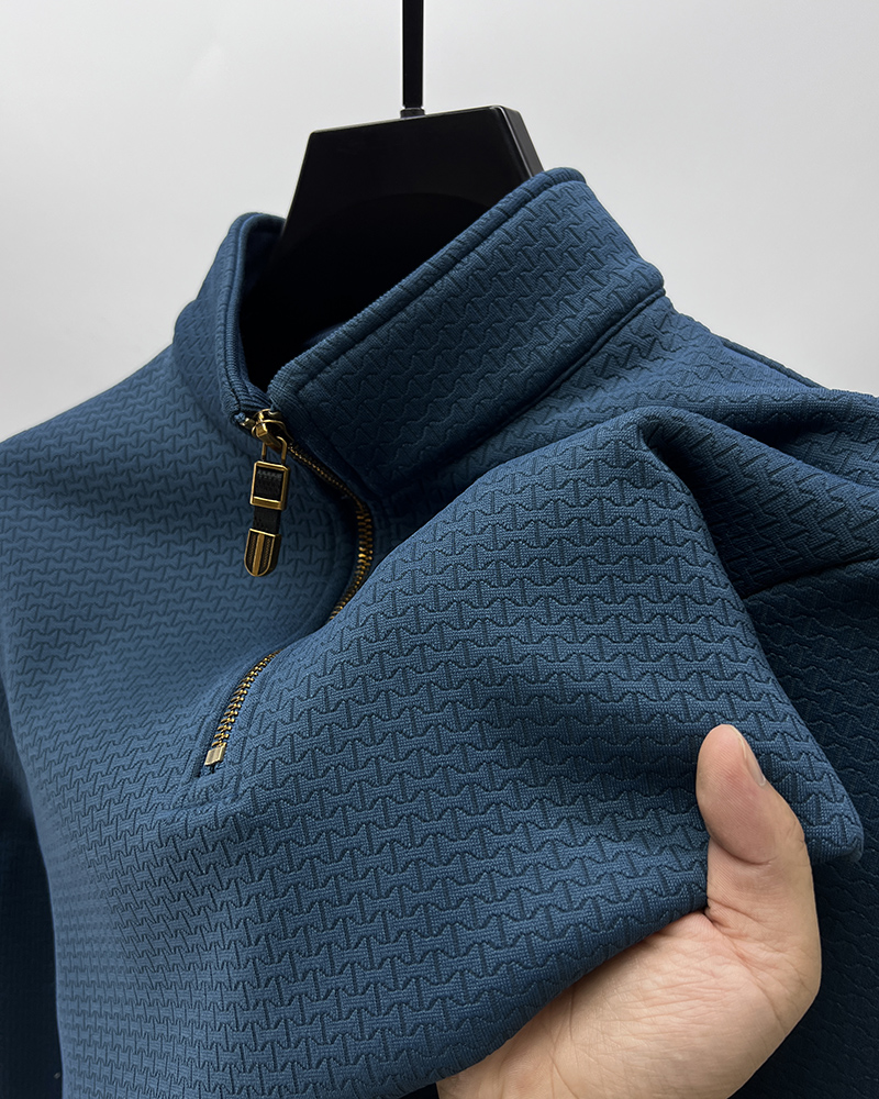 반 지퍼 스탠드 칼라 기모 두꺼운 긴팔 스웨터 남성 가을과 겨울 패션 브랜드 따뜻한 티셔츠 남성 스포츠 하이 칼라 탑스토어 가기