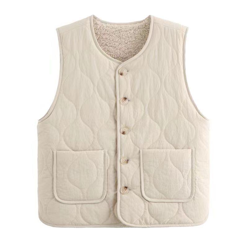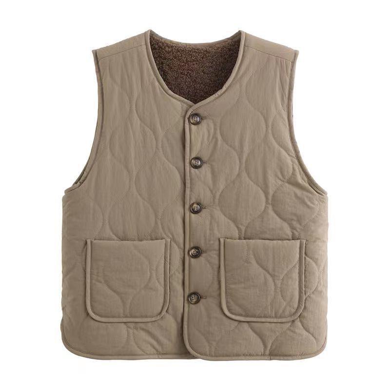 가을과 겨울 퀼트 양모 따뜻한 대형 포켓 조끼 여성의 실용 외부 디자인 조끼 어깨 재킷