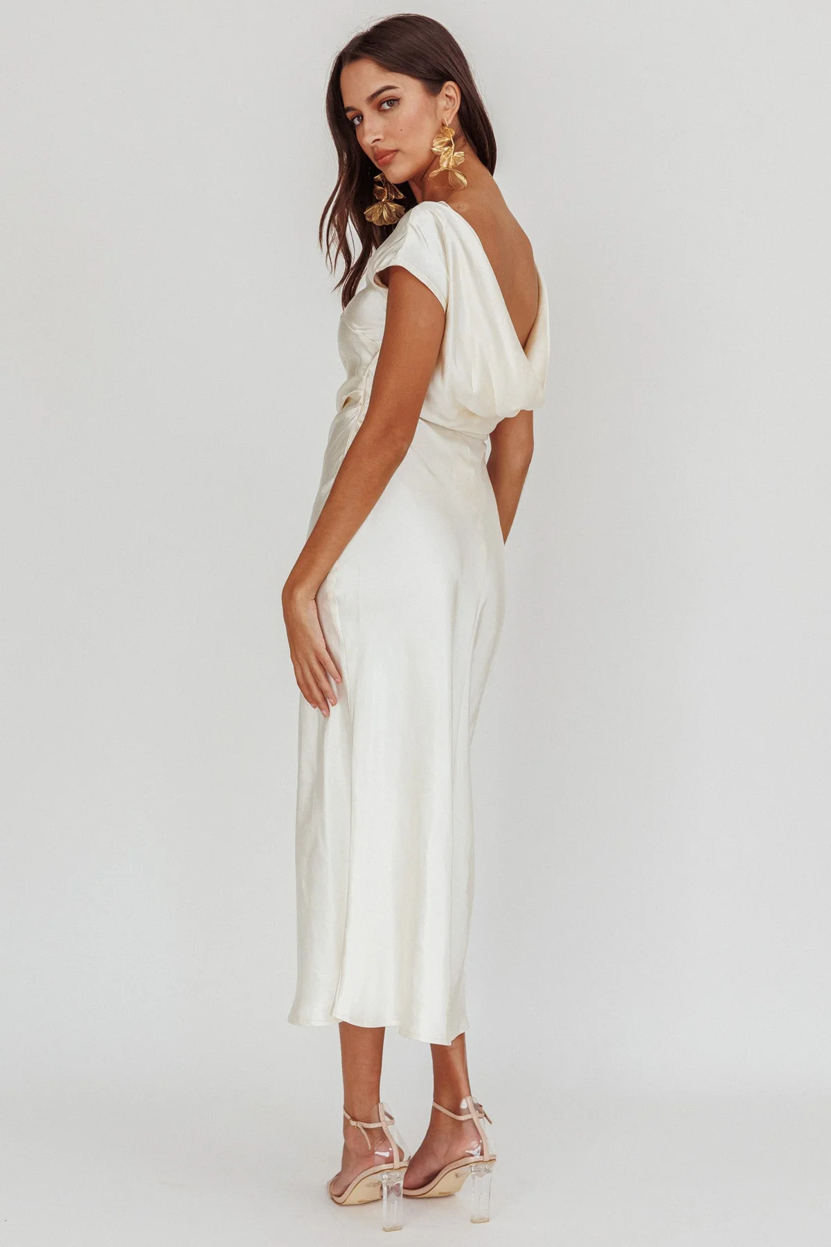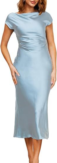 유럽과 미국의 국경 간 여성의 새로운 솔리드 컬러 하이 엔드 새틴 슬림 핏 어깨 섹시한 백리스 피쉬 테일 원피스스토어 가기