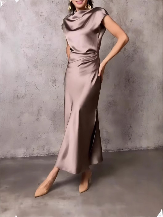 유럽과 미국의 국경 간 여성의 새로운 솔리드 컬러 하이 엔드 새틴 슬림 핏 어깨 섹시한 백리스 피쉬 테일 원피스