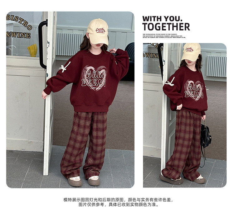 가을과 겨울 새로운 어린이 기모 땀 바지 세트 중소 소녀 영어 사랑 쌍 바지 두꺼운 두 조각 세트스토어 가기