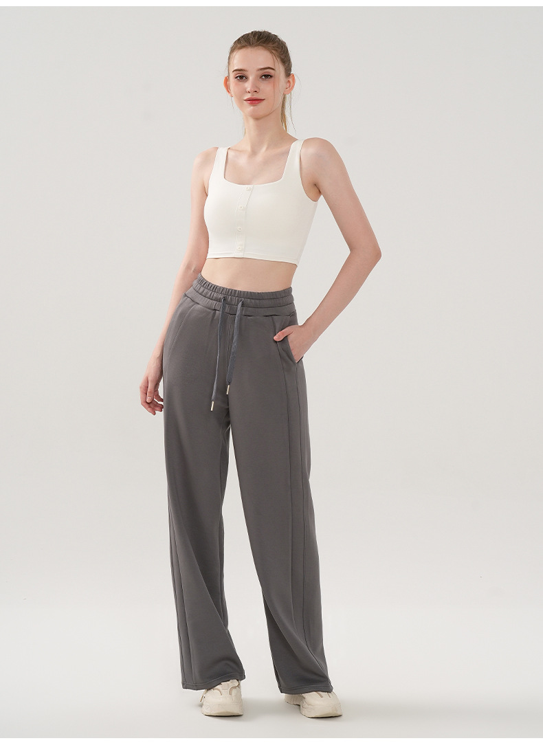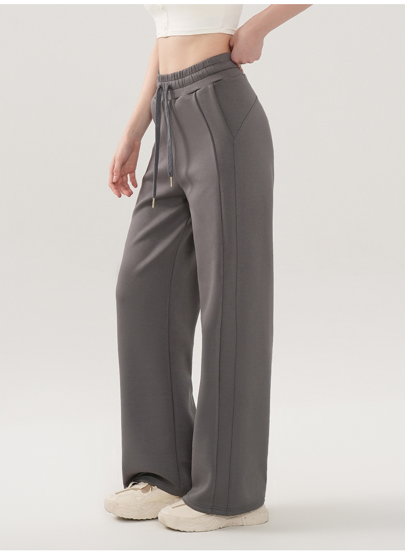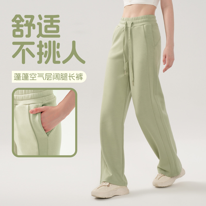 부드러운 왁스 에어 레이어 요가 바지 여성의 가을과 겨울 느슨한 넓은 다리 바지 통근 피트니스 Drawstring 캐주얼 바지 여성