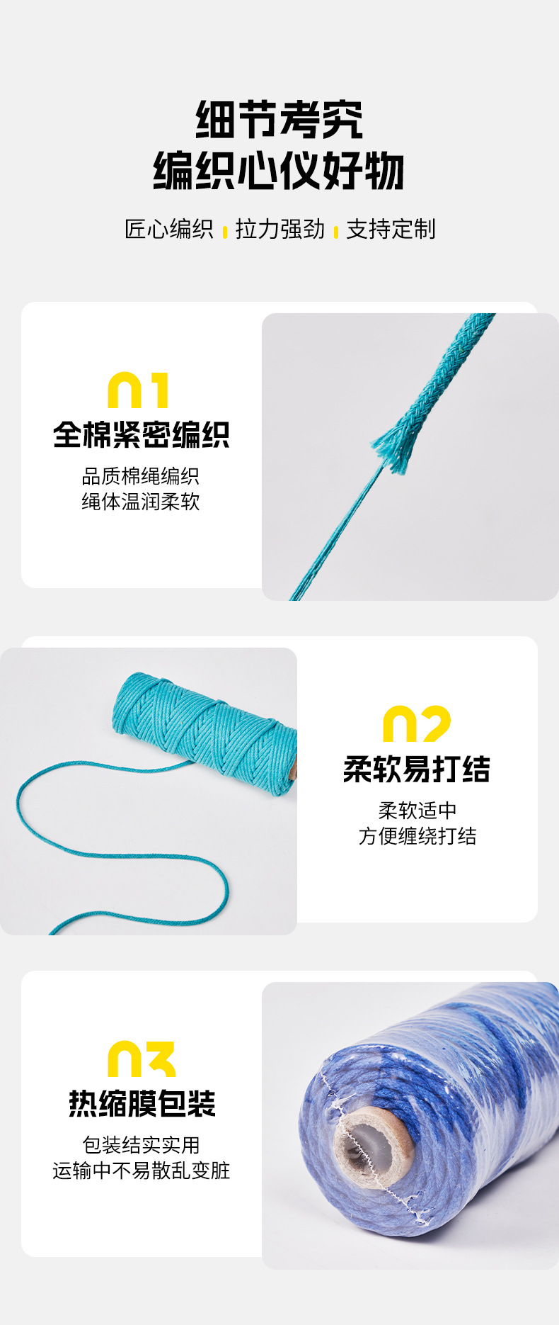 컬러 코어 감싼면 로프 크로스 보더 diy3mm 손으로 짠 소재 번들 면사 4mm 홈 텍스타일 짠 면 로프스토어 가기