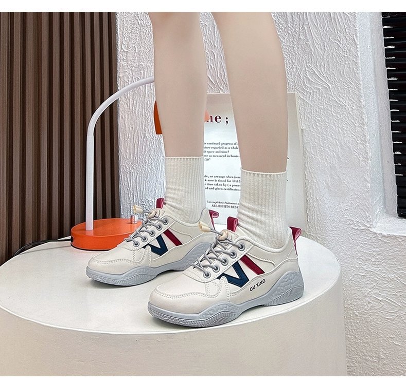 컬러 블록 레트로 화이트 신발 여성의 2024 가을 겨울 새로운 학생 패션 캐주얼 신발 경량 레이스 업 운동화스토어 가기