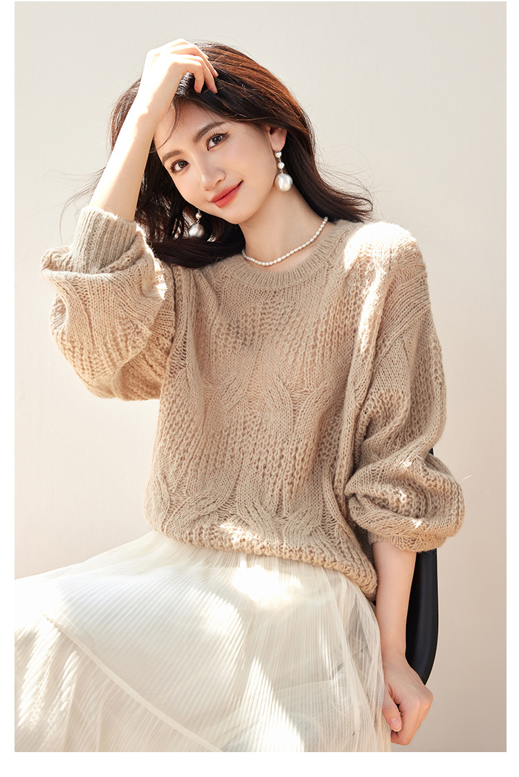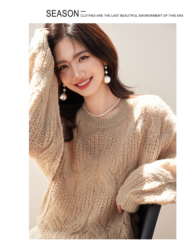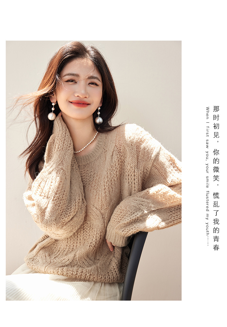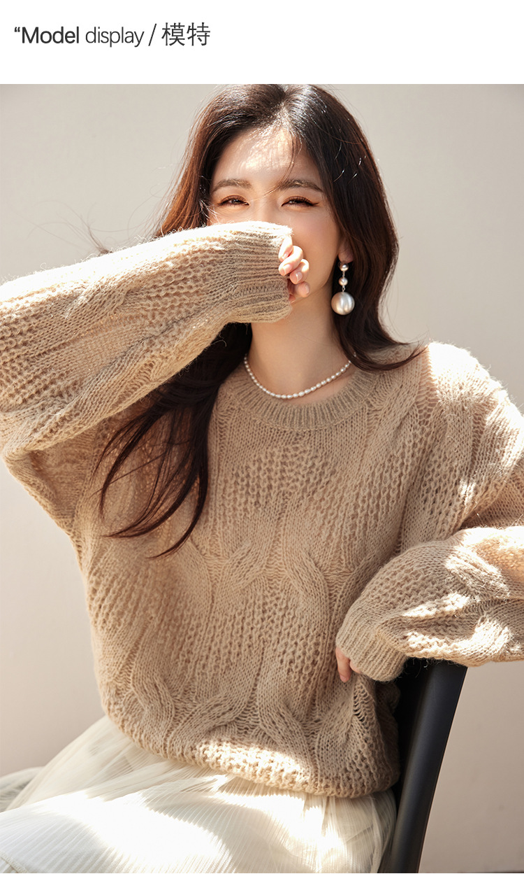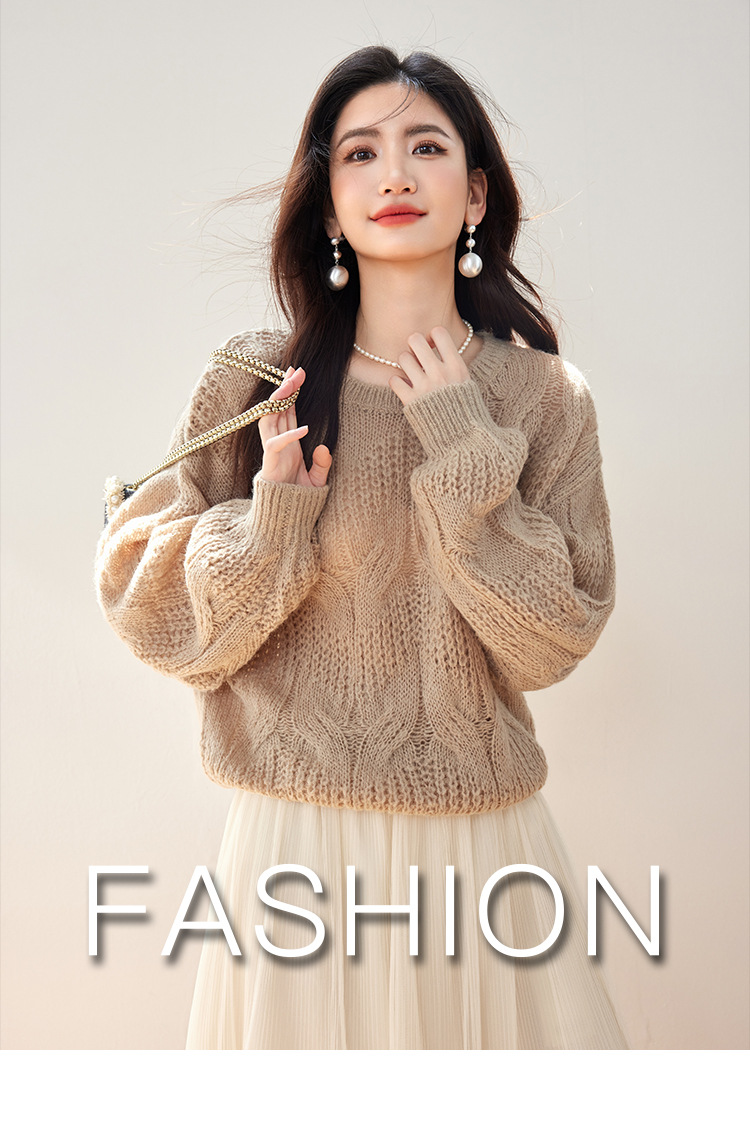 2024 년 가을과 겨울 새로운 부드러운 꼬인 니트 스웨터 어깨 디자인 빈 짧은 터틀넥 크루 넥 스웨터스토어 가기