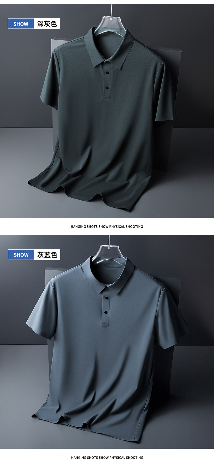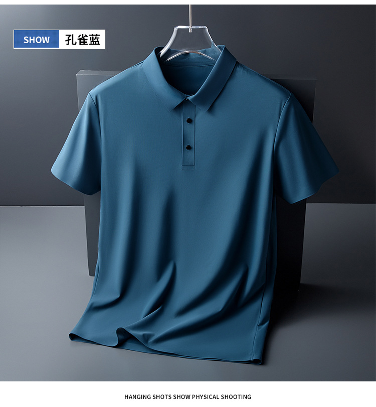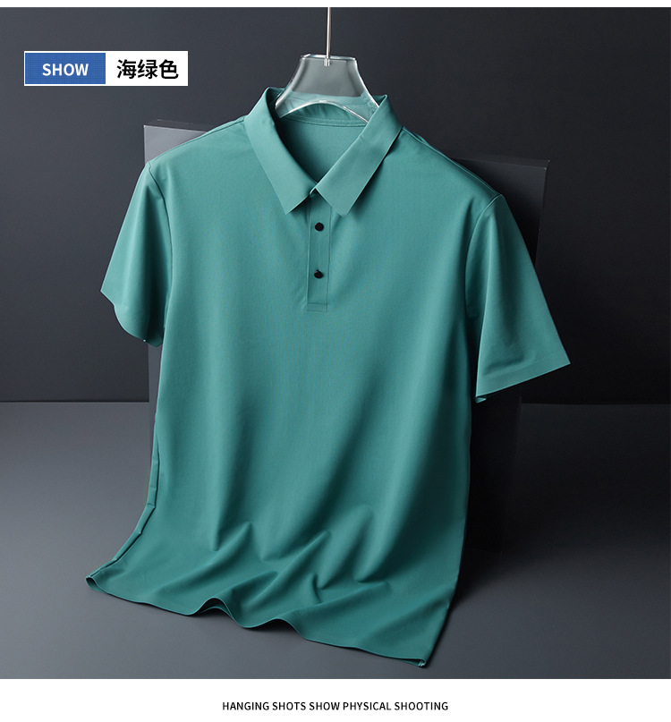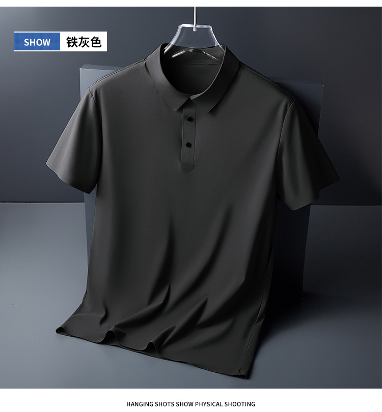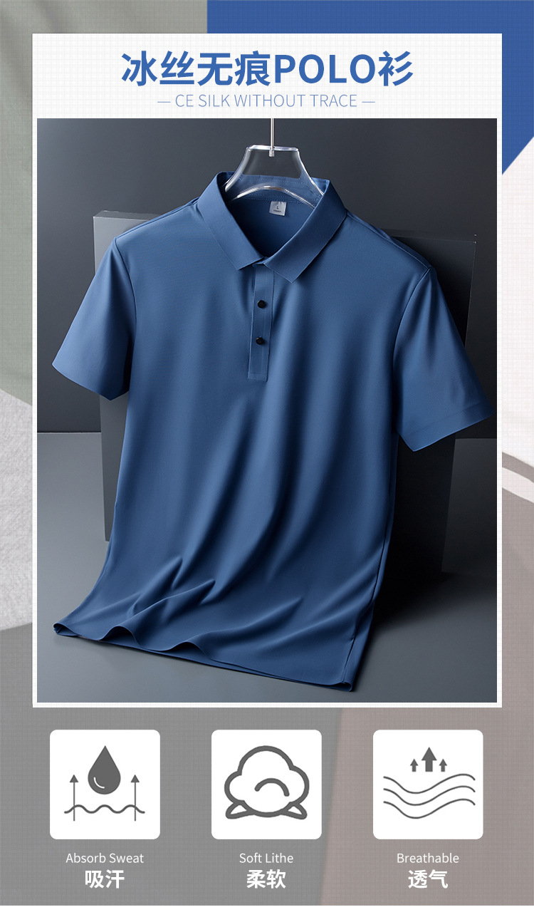 추적없는 비즈니스 남성 POLO 셔츠 여름 얼음 피부 친화적 인 통기성 아이스 실크 티셔츠 짧은 소매 바지 인쇄 가능한 로고