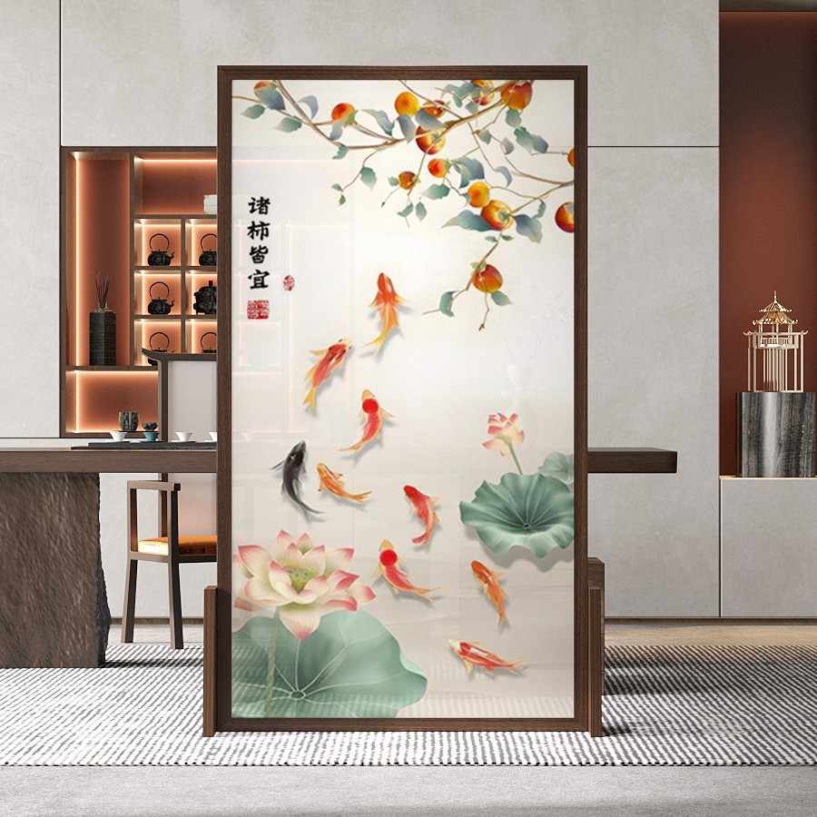 새로운 중국 스타일 현대 스크린 파티션 거실 입구 복도 대피소 장식 모바일 솔리드 우드 시트 화면 모든 것스토어 가기