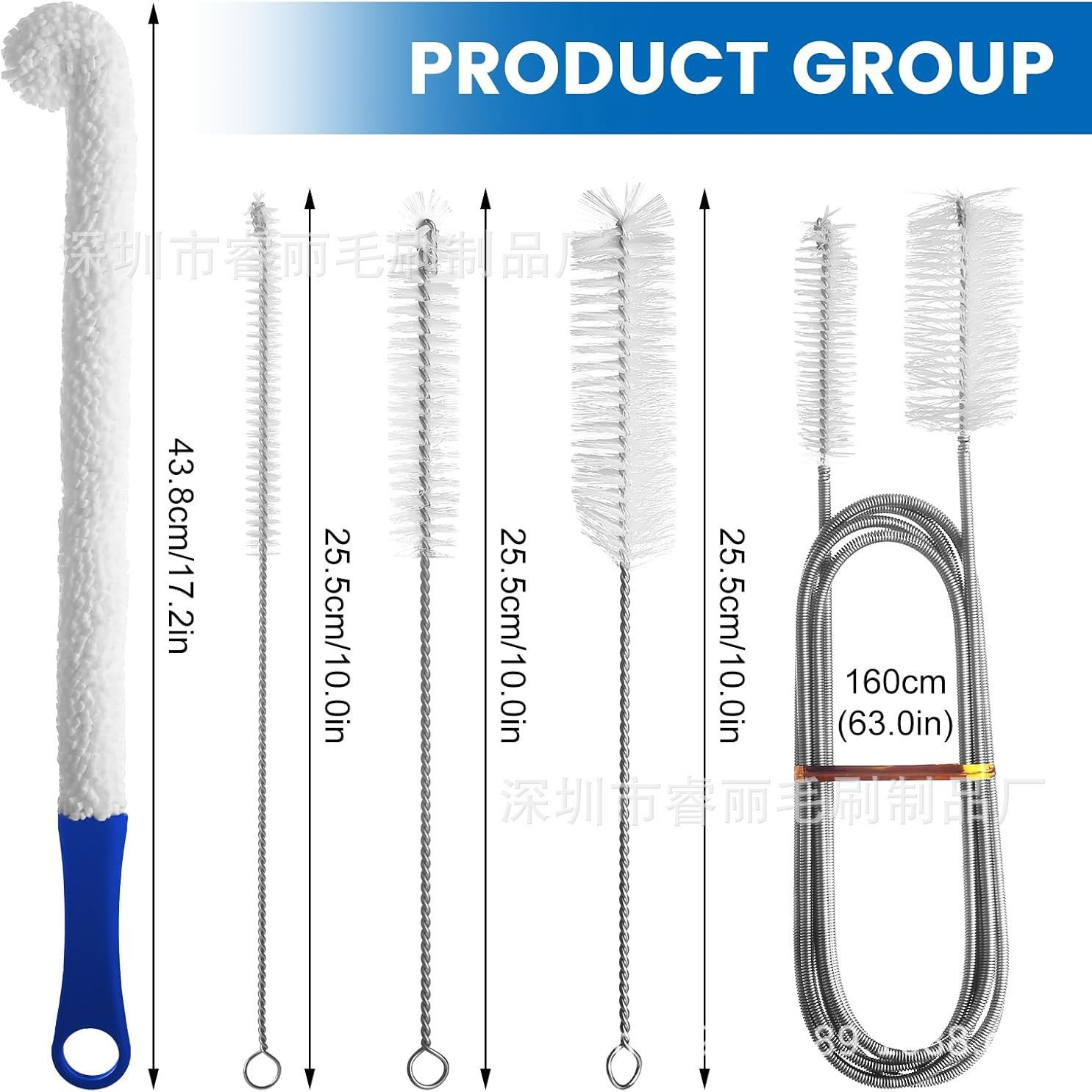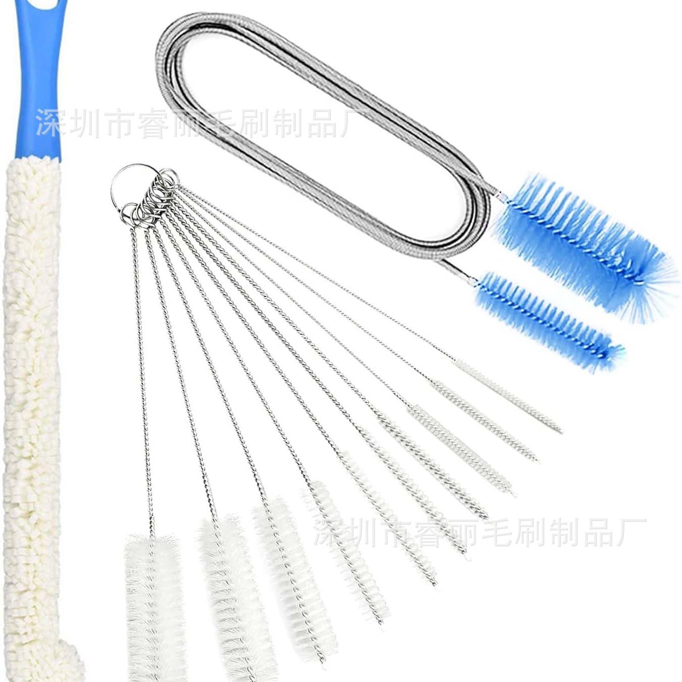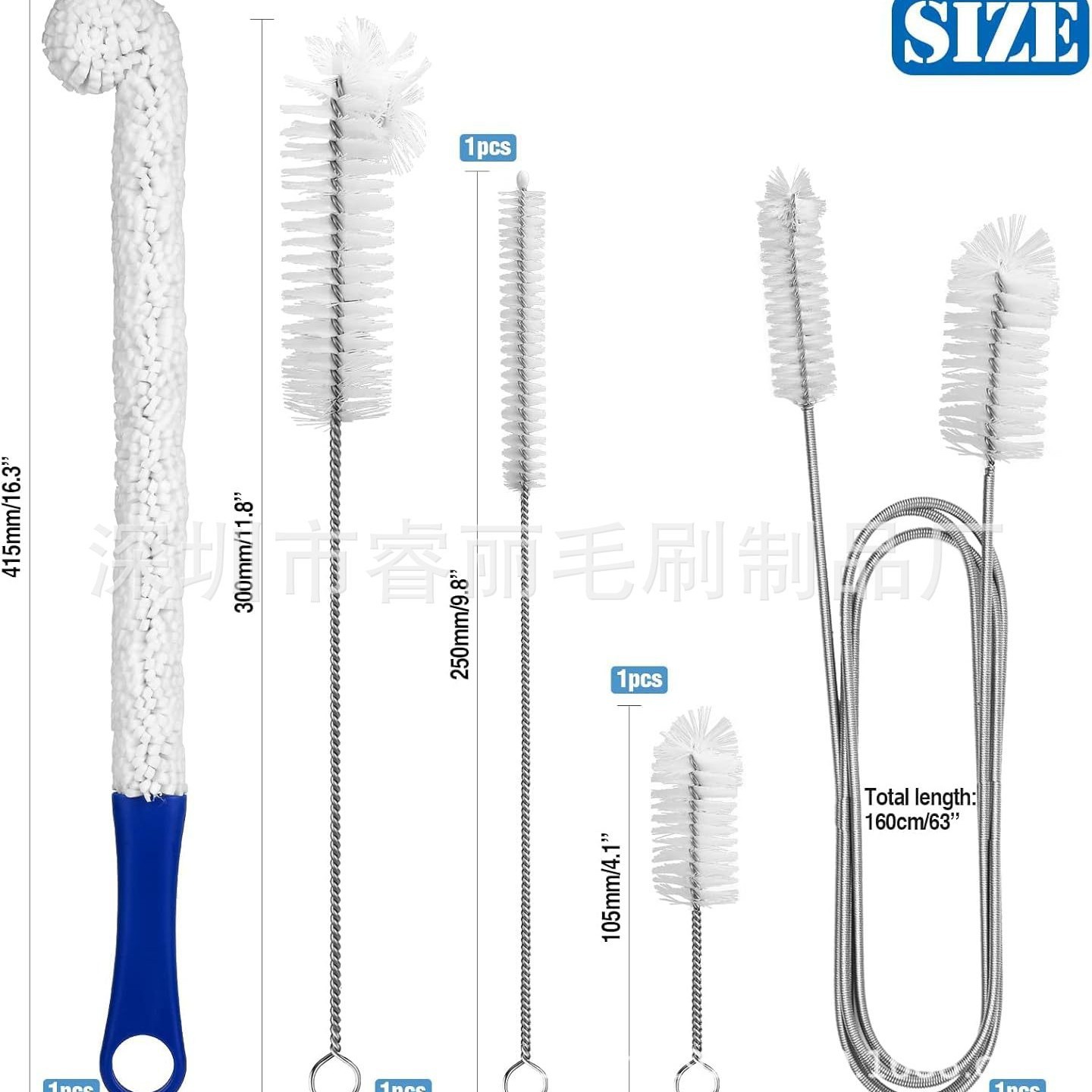 • 无死角清洗:滗水器刷、喷嘴刷、管道刷可强力弯曲,对于一些普通刷子难以触及的容器或U型器皿的狭窄处,可以轻松清洗,去除污垢、细菌和病毒。