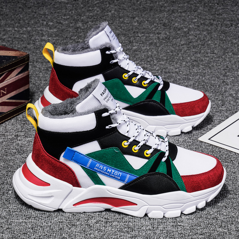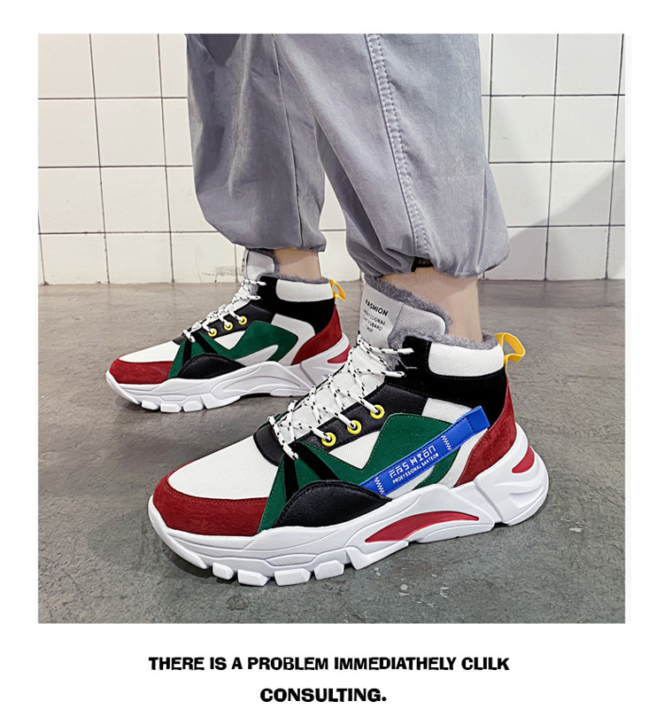 남자 하이 탑 신발 겨울 기모 따뜻한 코튼 신발 남자 청소년 스포츠 캐주얼 올 매치 패션 신발