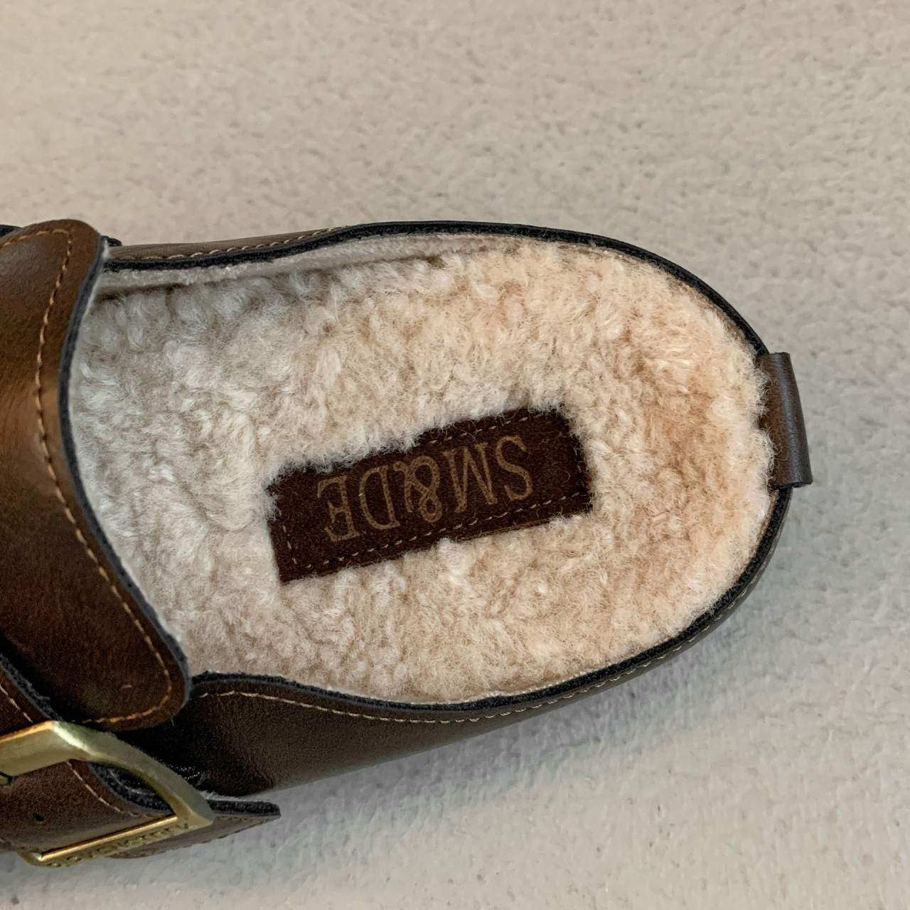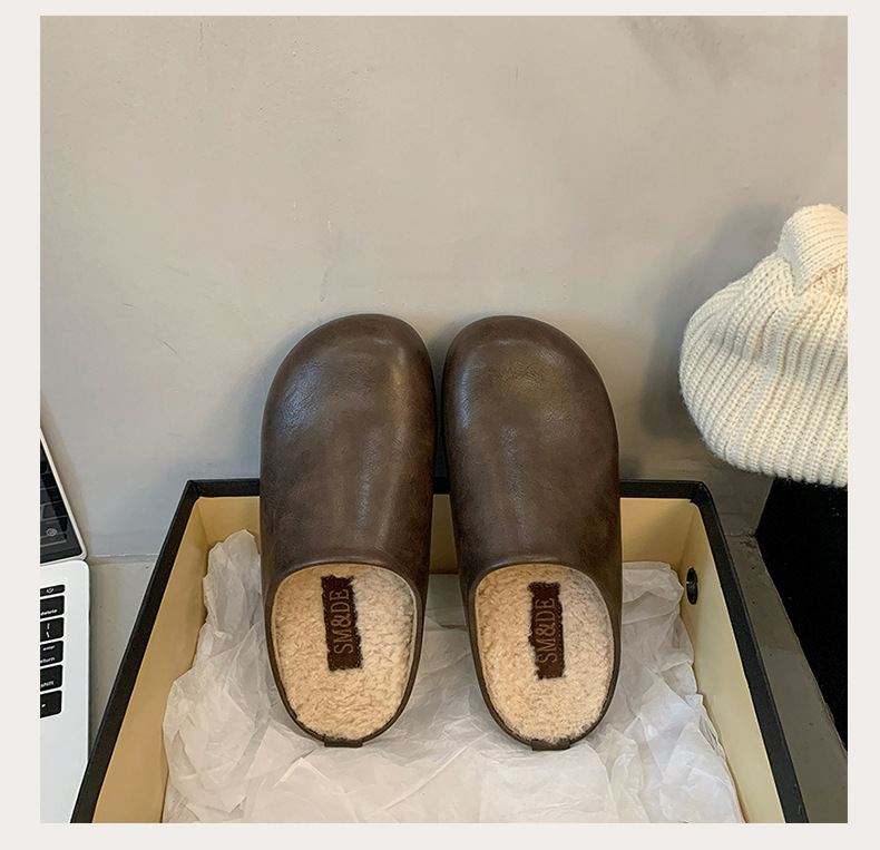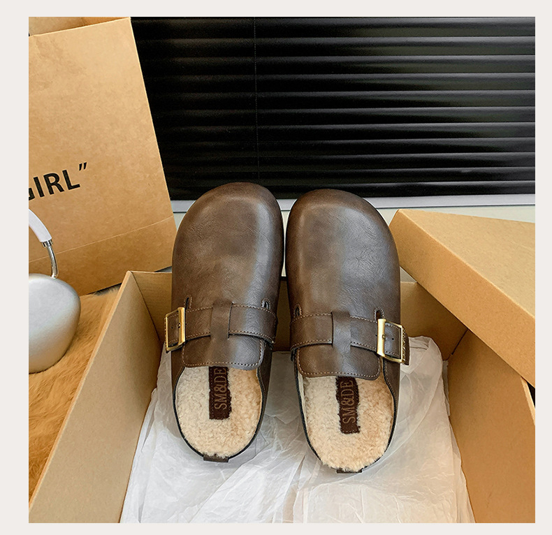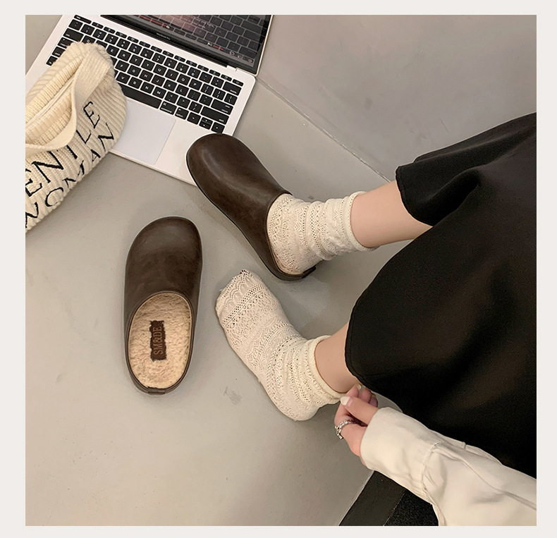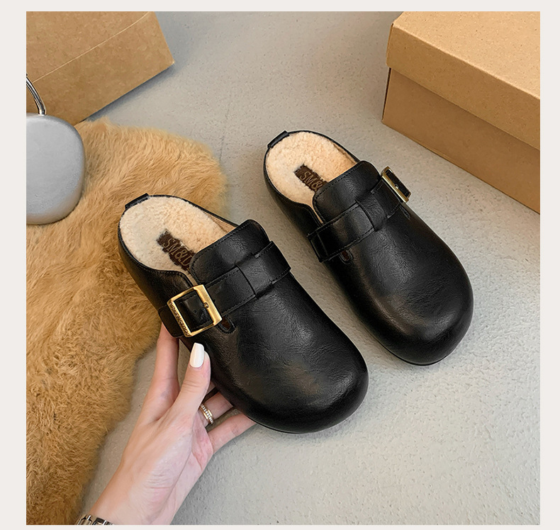 마오 마오 슬리퍼 여성 아우터 2024 새로운 가을과 겨울 플랫 바닥 임산부 게으른 바오 터 하프 슬리퍼 기모 하프 슬리퍼