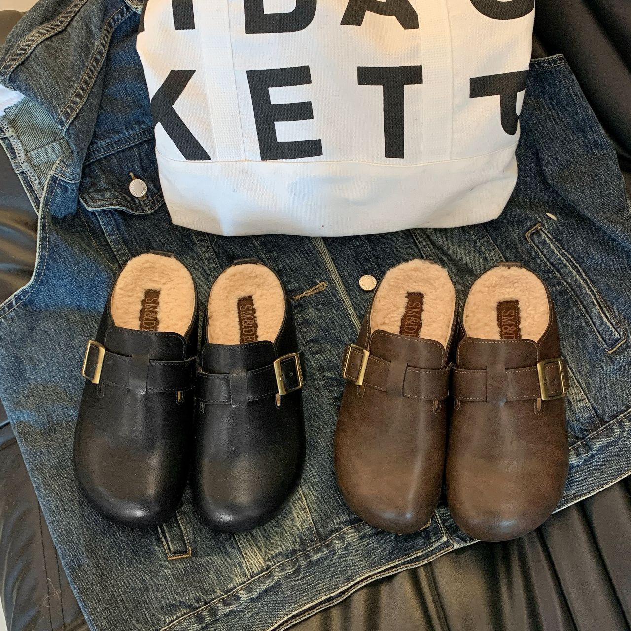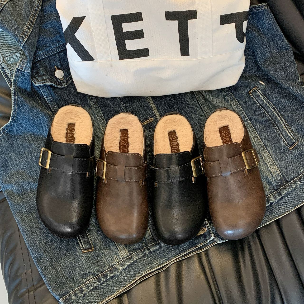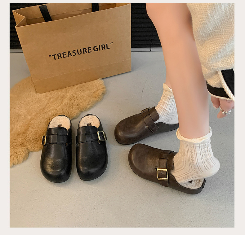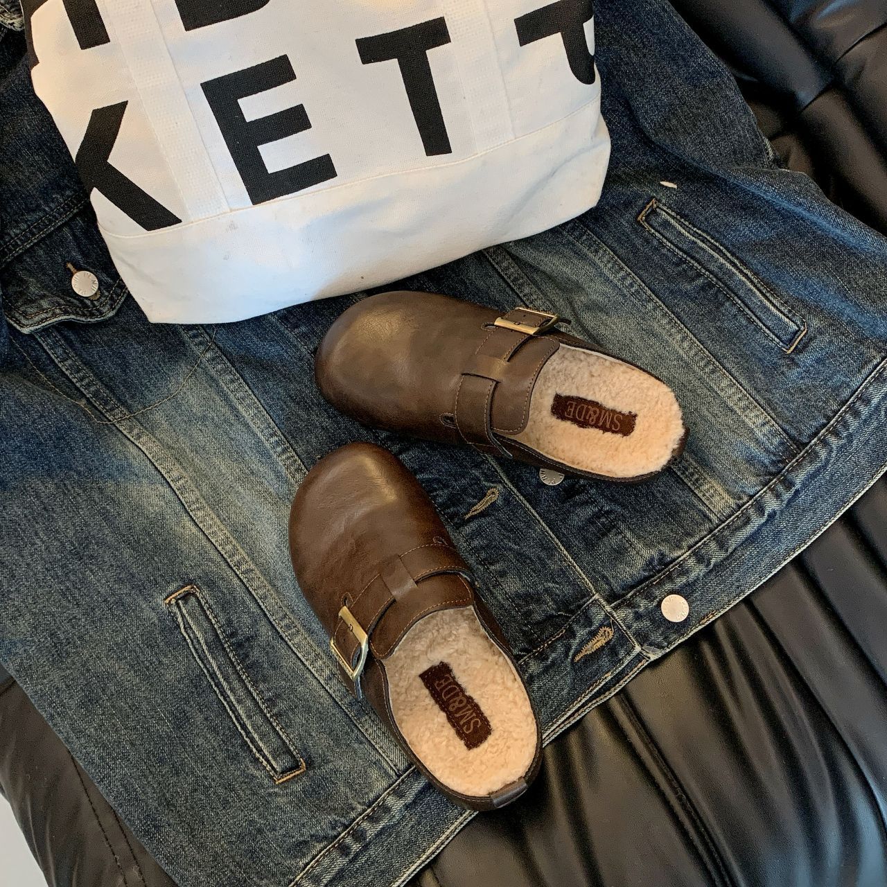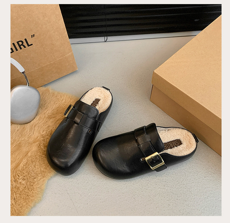 마오 마오 슬리퍼 여성 아우터 2024 새로운 가을과 겨울 플랫 바닥 임산부 게으른 바오 터 하프 슬리퍼 기모 하프 슬리퍼스토어 가기