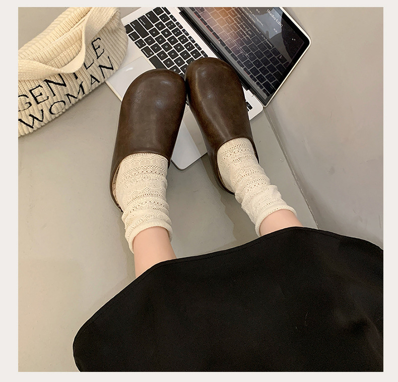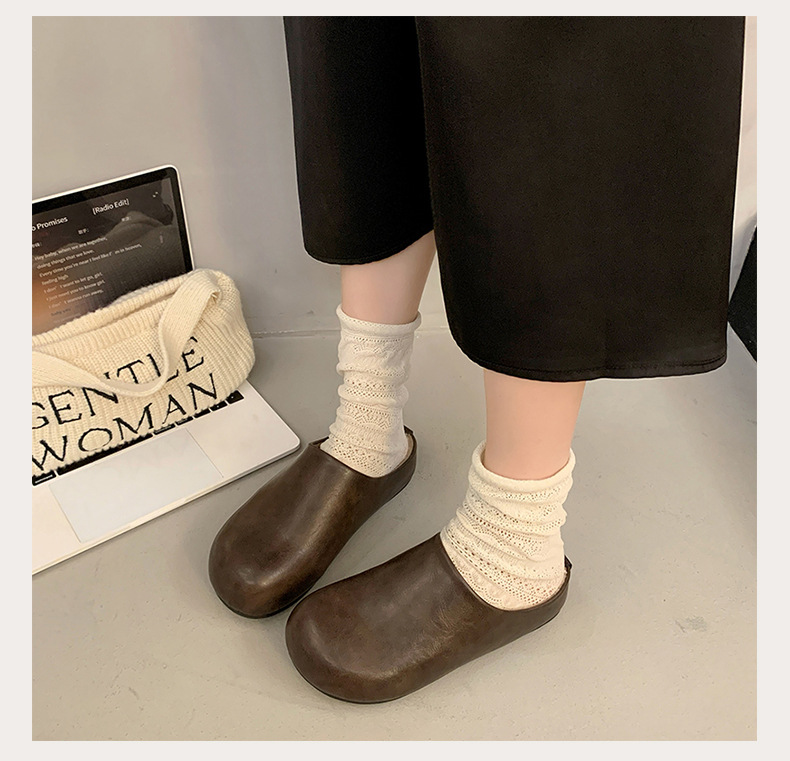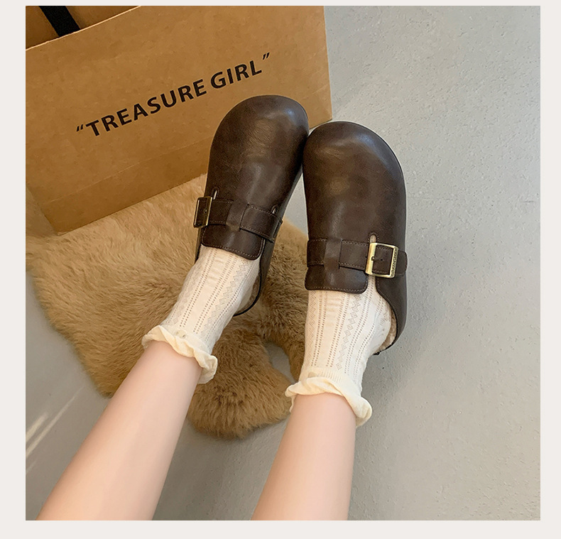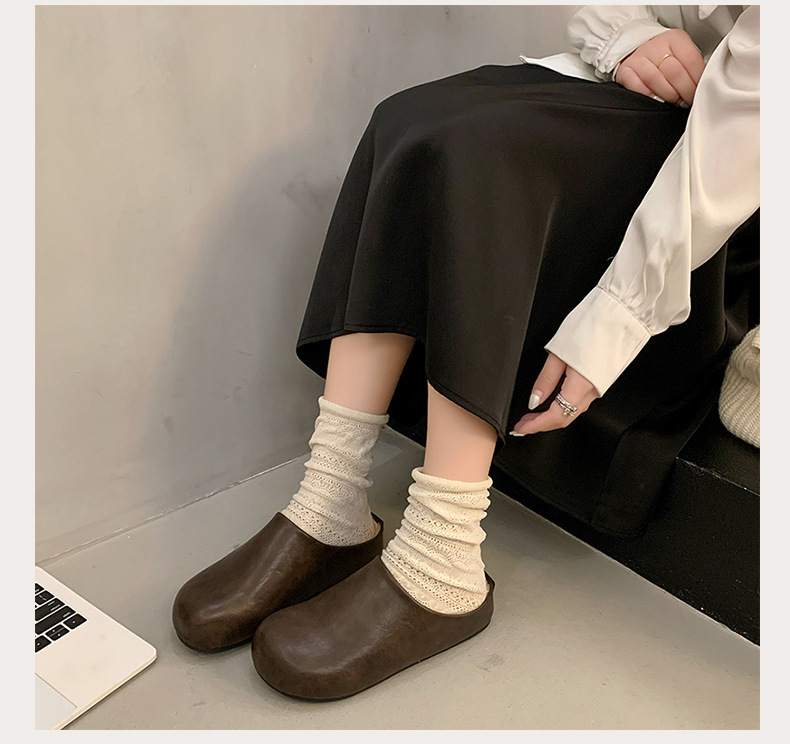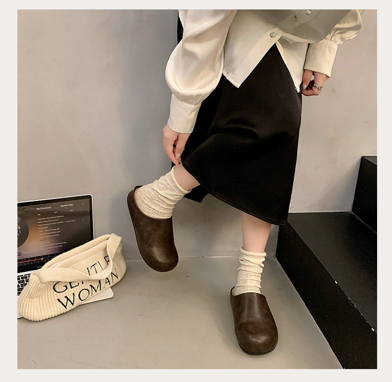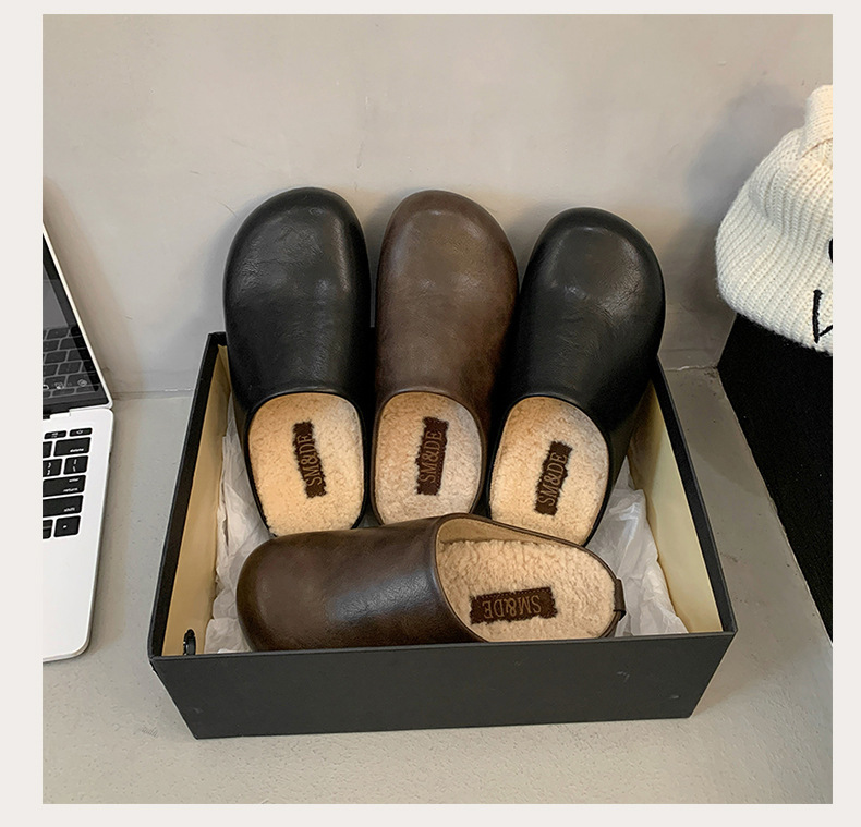 마오 마오 슬리퍼 여성 아우터 2024 새로운 가을과 겨울 플랫 바닥 임산부 게으른 바오 터 하프 슬리퍼 기모 하프 슬리퍼스토어 가기