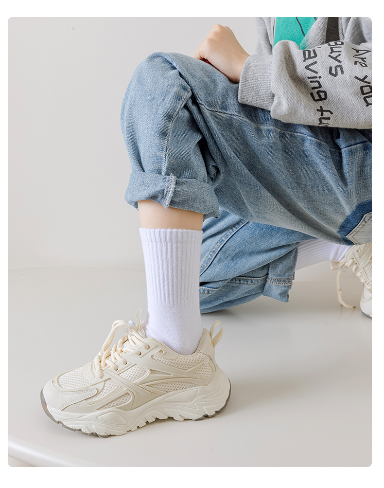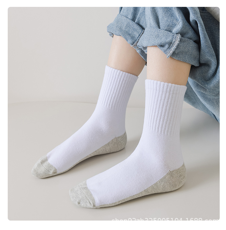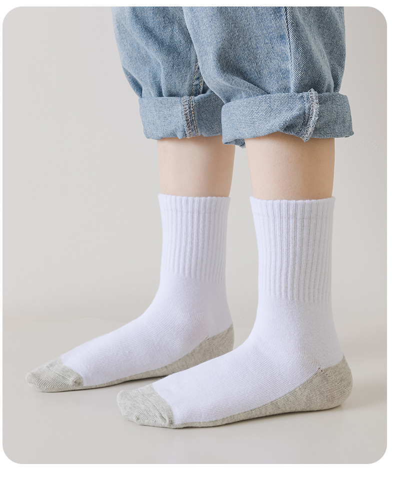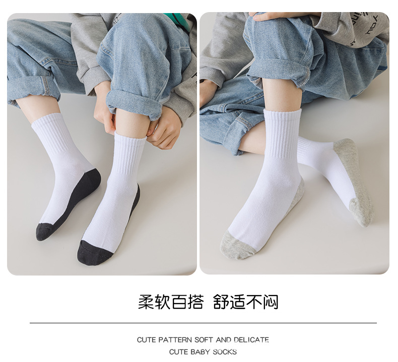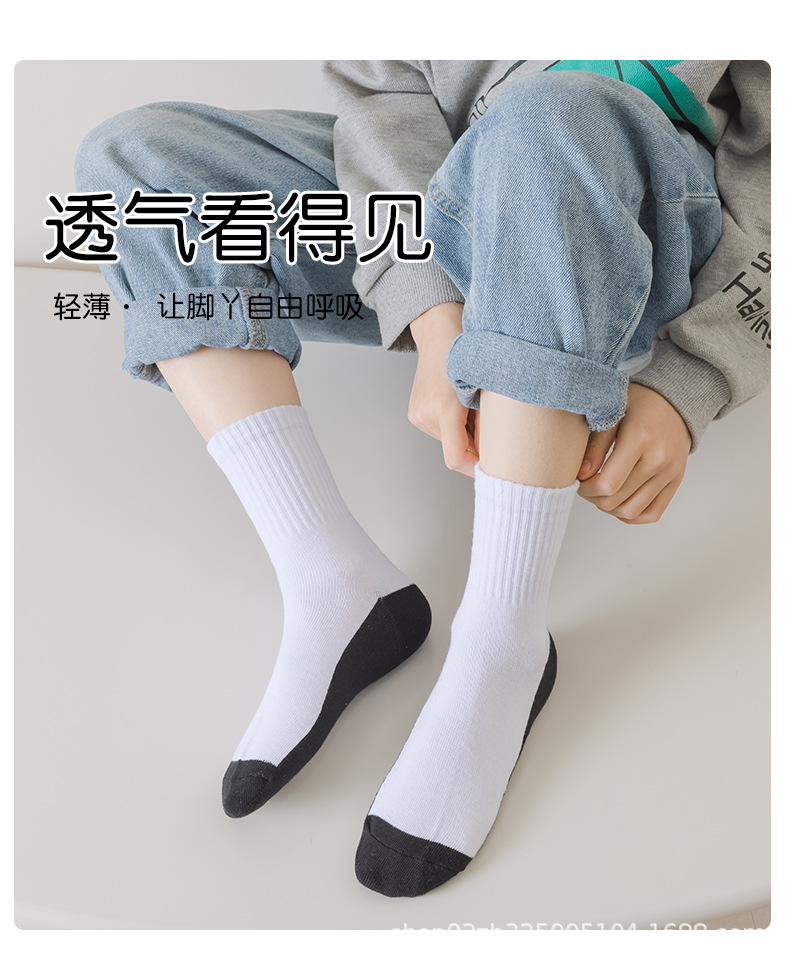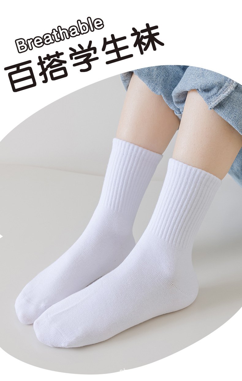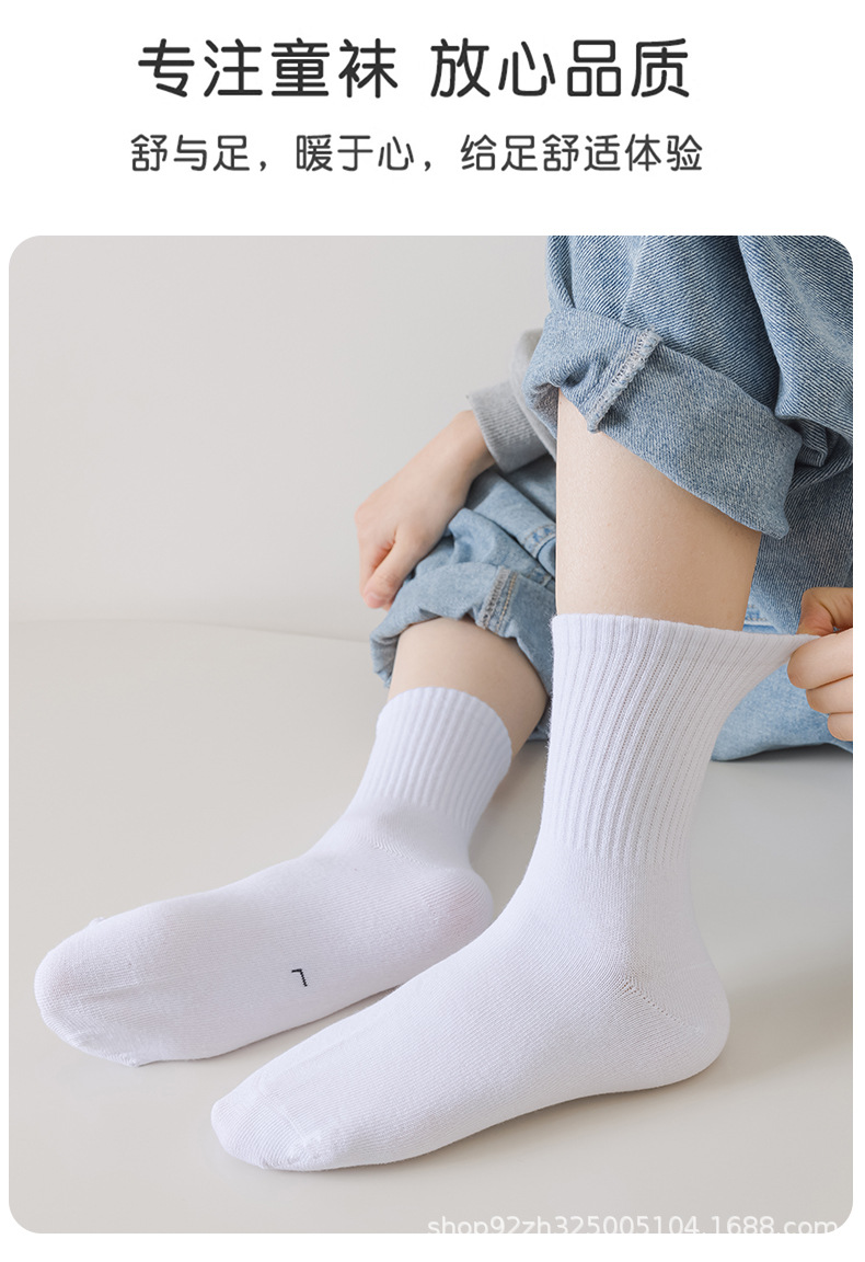 어린이 양말 봄과 가을 얇은 중간 튜브 면 양말 소년 및 소녀 중 큰 어린이 통기성 순수 흰색 양말 초등 및 중학생