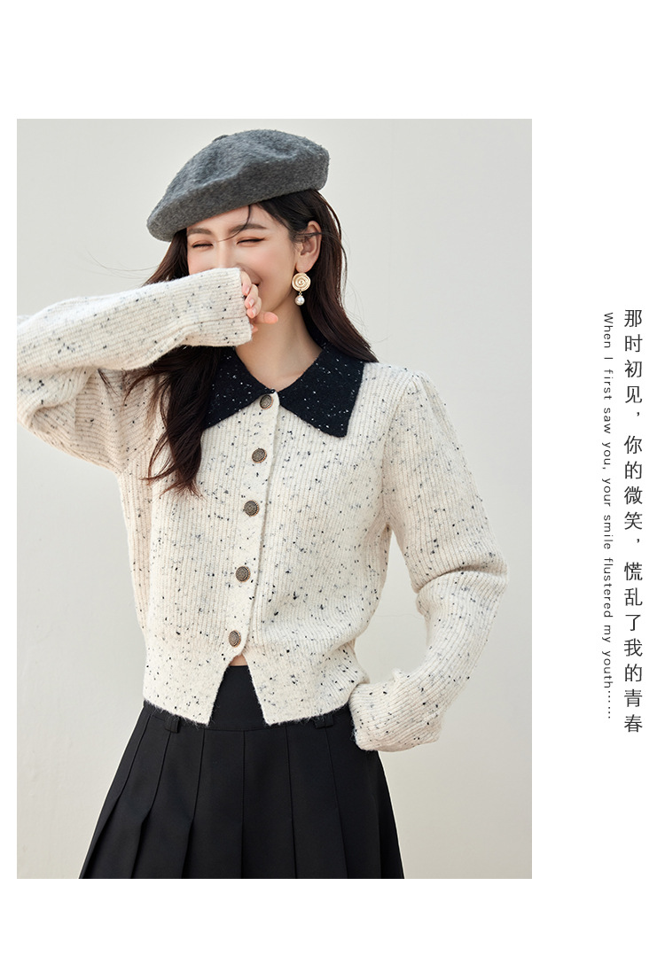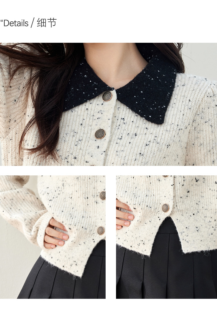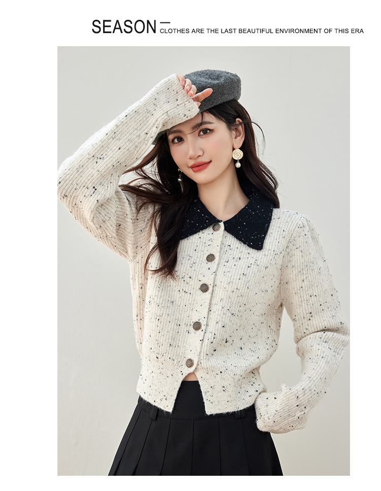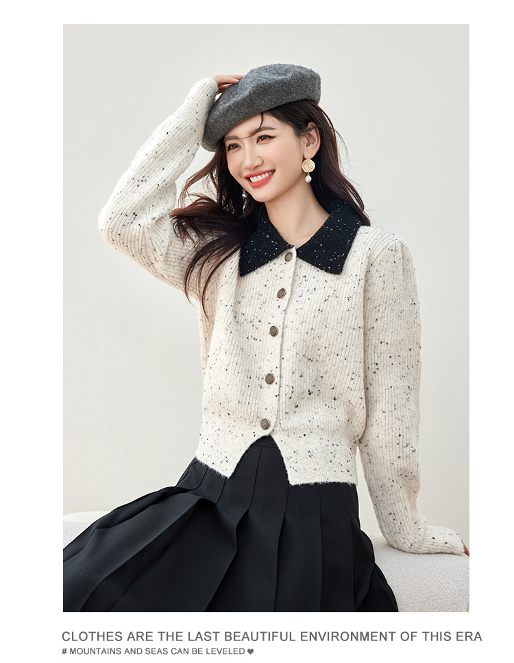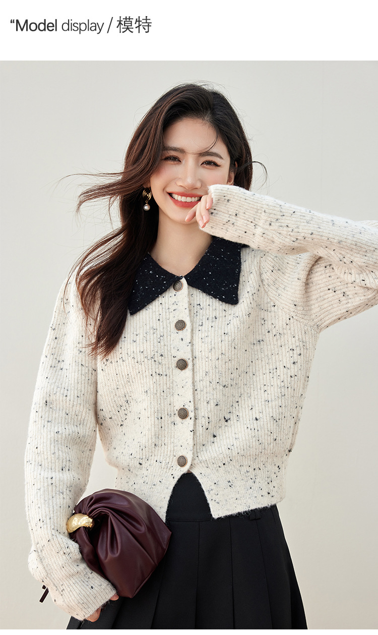 2024 가을과 겨울 새로운 스타일의 폴로 칼라 스웨터 사교계 기질 꽃 디자인 짧은 카디건 스웨터스토어 가기