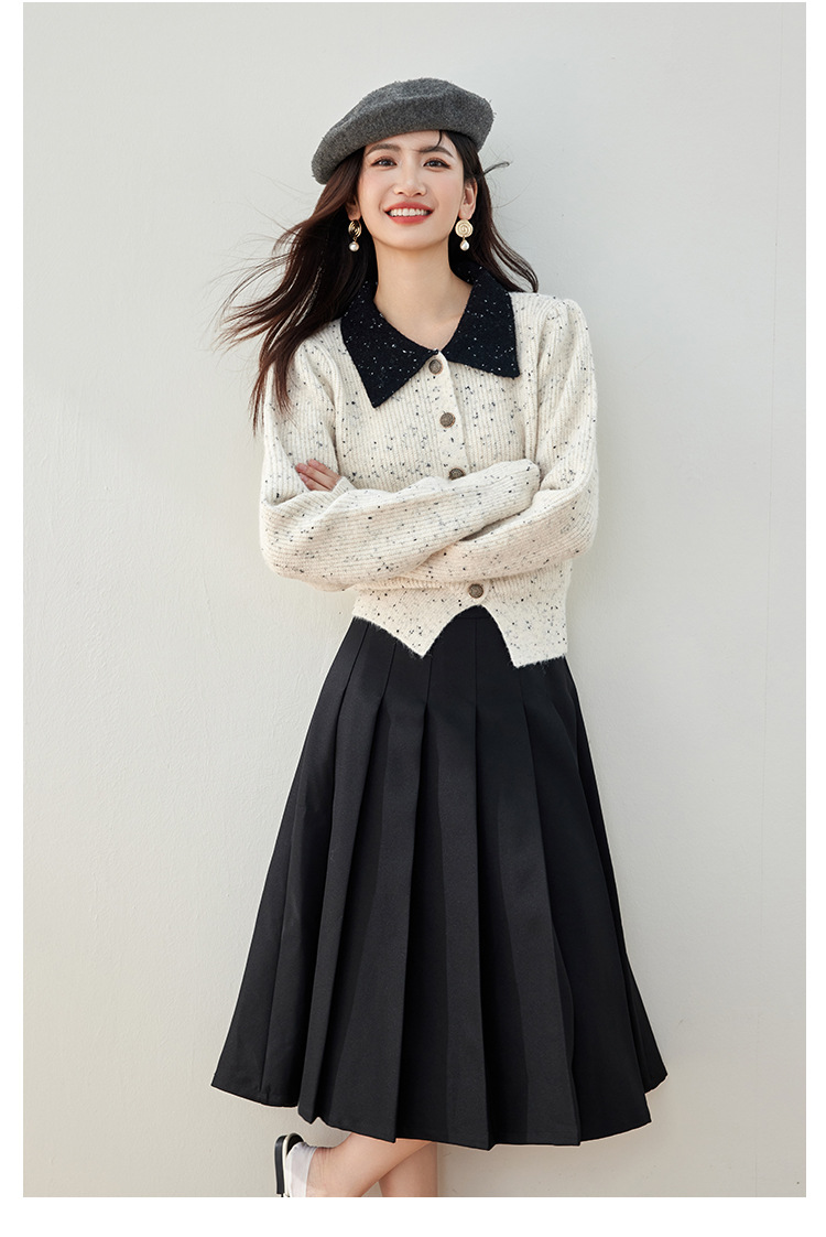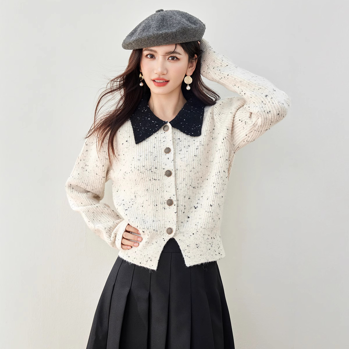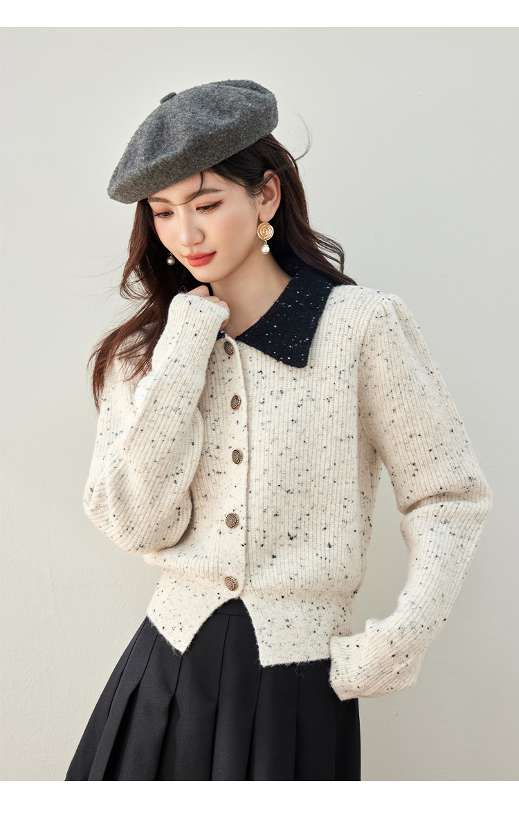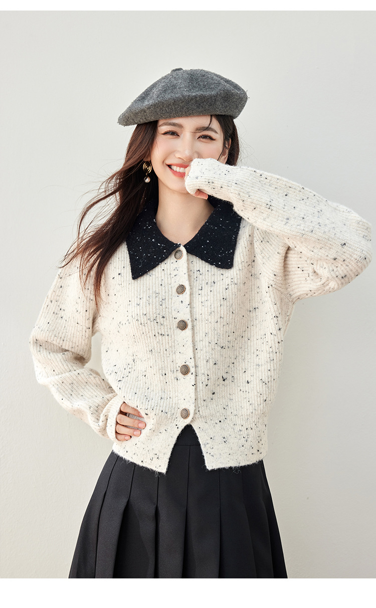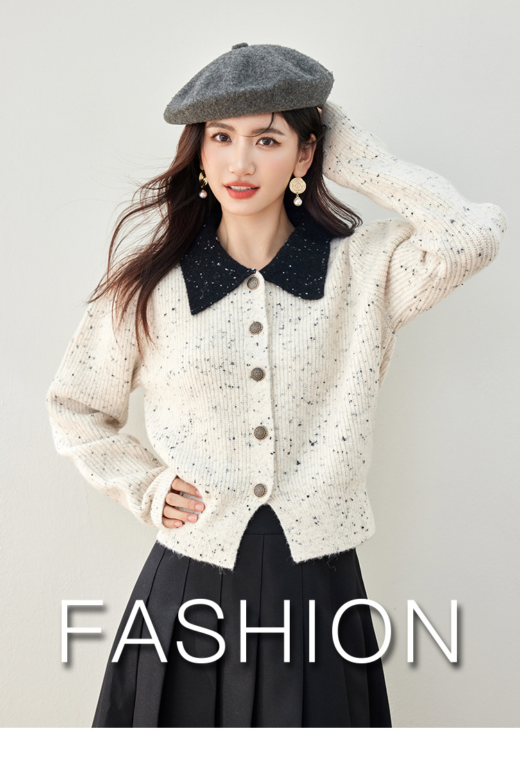 2024 가을과 겨울 새로운 스타일의 폴로 칼라 스웨터 사교계 기질 꽃 디자인 짧은 카디건 스웨터스토어 가기