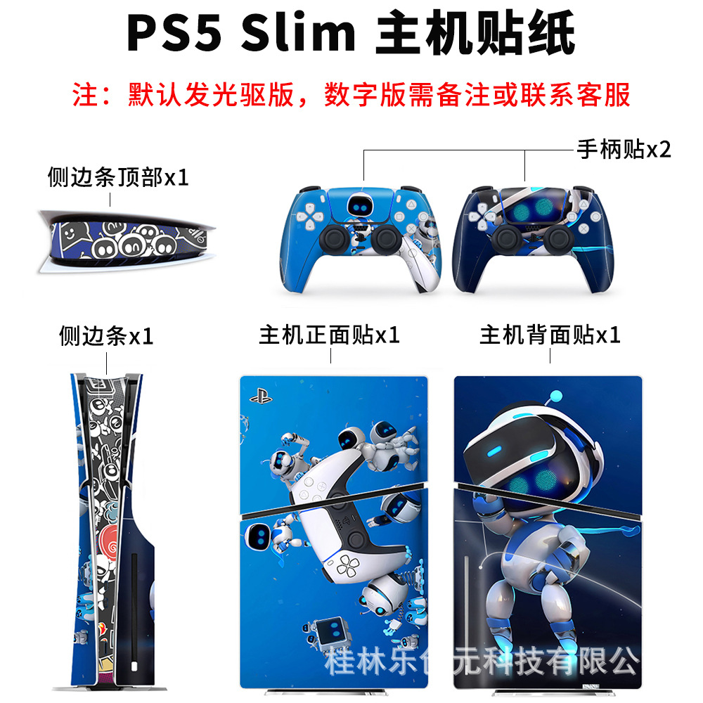 注:此链接是新款的薄机PS5 Slim 主机贴纸(默认发光驱版,数字版需备注或留言客服) 此款图案均可做成PS5老款厚机版本哦,亲下单请查看您手上的主机外观哦。下单请备注或留言给客服,感谢您的支持!