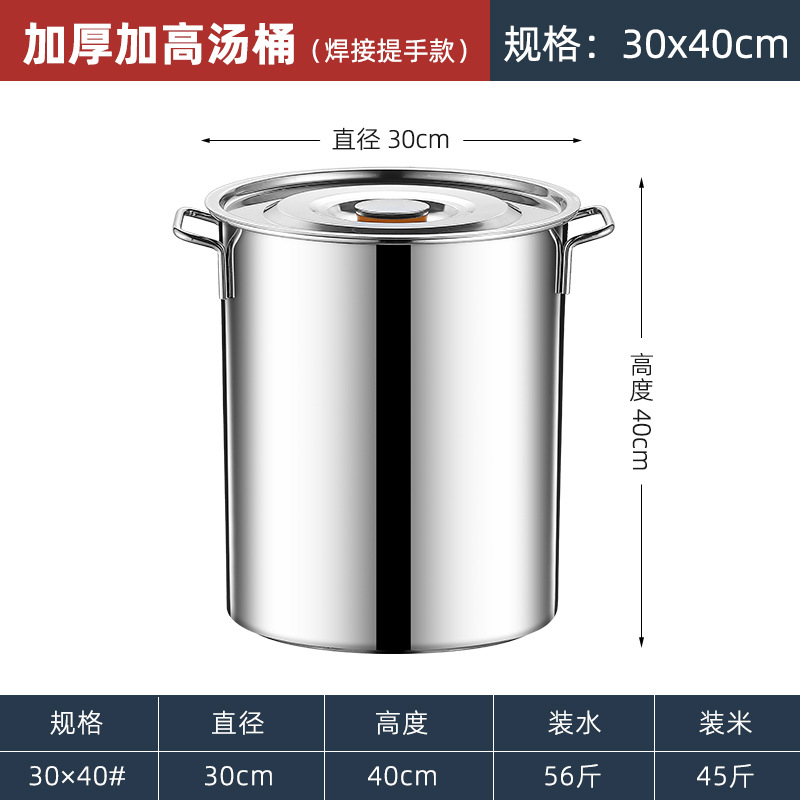 304 스테인레스 스틸 버킷 식품 등급 드럼 뚜껑 대용량 스테인레스 스틸 소금물 수프 냄비 50 수프 버킷 도매 가격스토어 가기