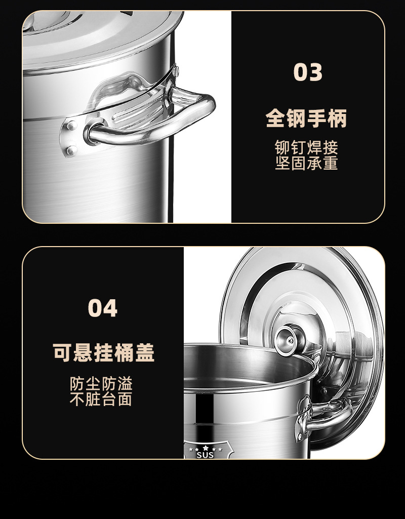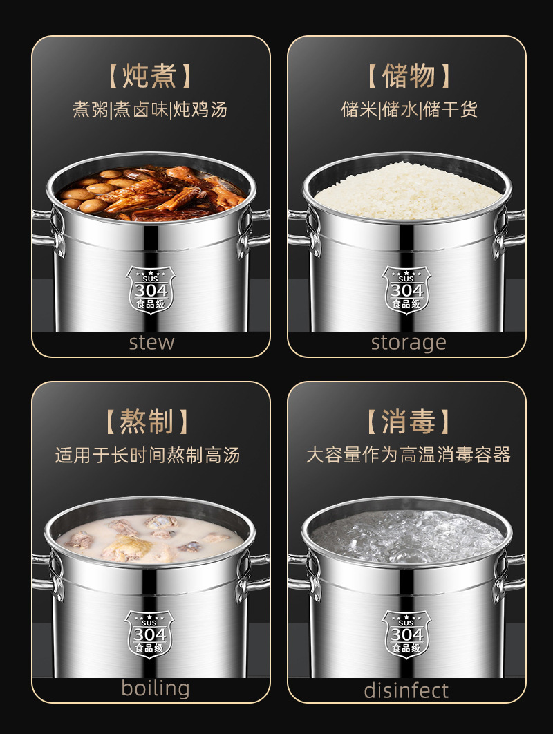 304 스테인레스 스틸 버킷 식품 등급 드럼 뚜껑 대용량 스테인레스 스틸 소금물 수프 냄비 50 수프 버킷 도매 가격