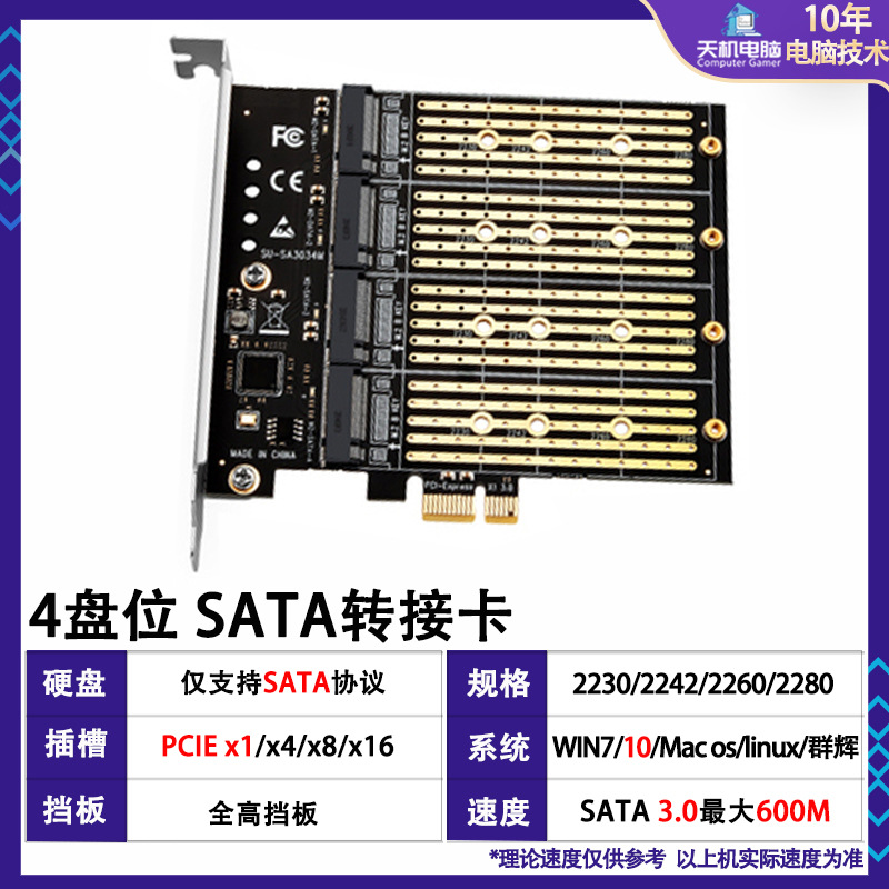 PCIE-M2 SATA 어댑터 카드 4 디스크 SSD에 PCI-E NGFF SATA 확장 카드스토어 가기