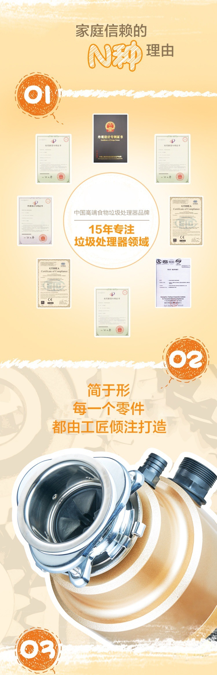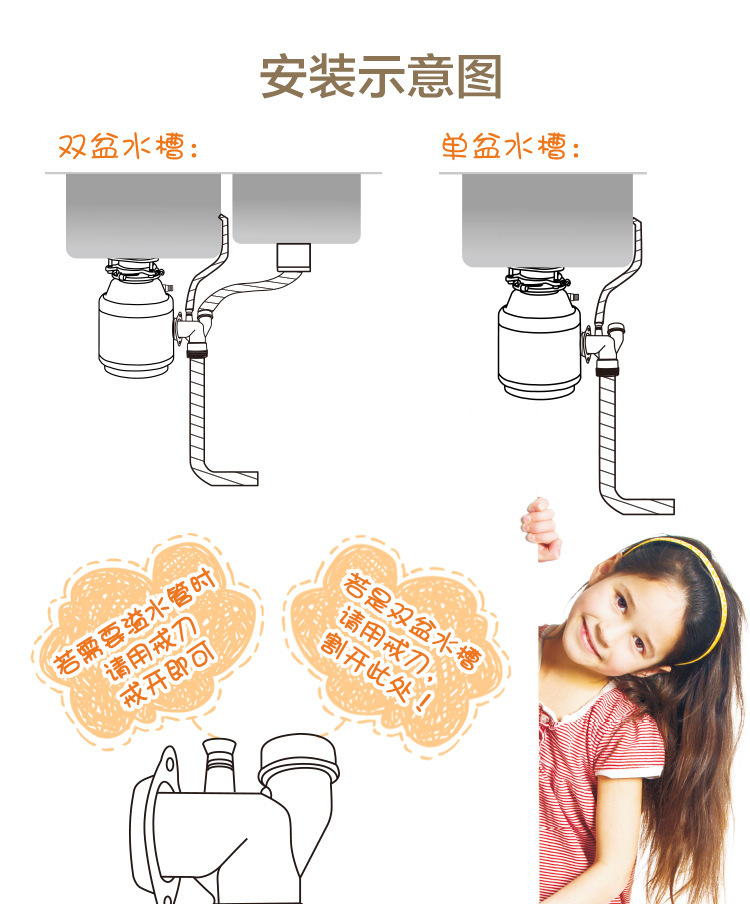 독일 주방용 음식물 쓰레기 처리기 수중 음식물 분쇄기 800W 고출력 뼈도 분쇄 가능