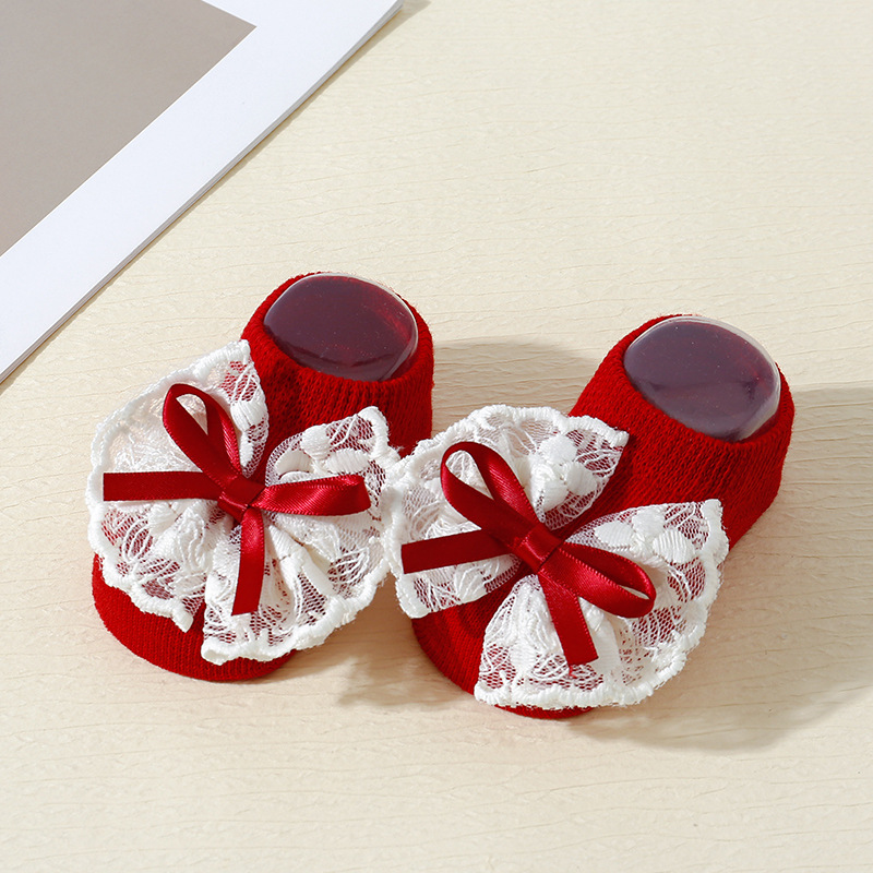 Ins 새해 아기 절묘한 레이스 보우 유아 보트 양말 아기 양말 폭발성 유아 미끄럼 방지 바닥 양말