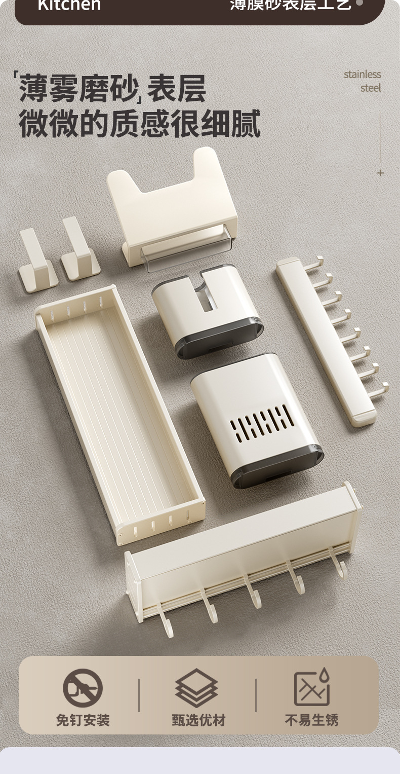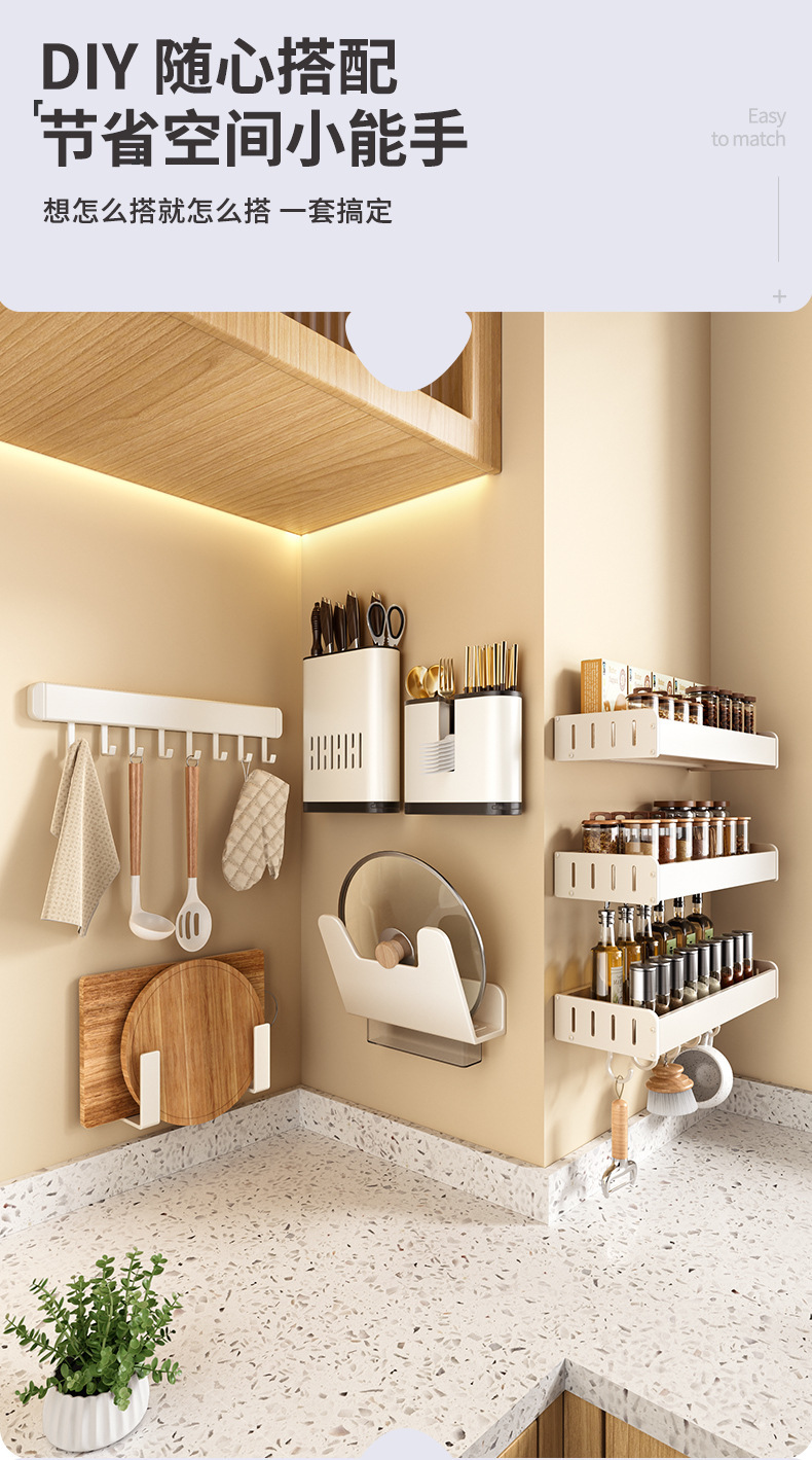흰색 주방 보관 랙 펀치없는 벽 장착 조미료 가구 벽 다기능 나이프 홀더 조미료 보관 아티팩트스토어 가기