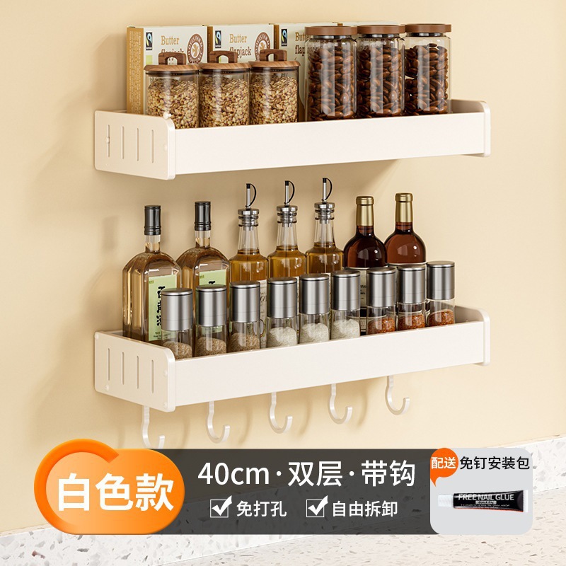 • 흰색 - 후크 5개가 있는 단층 40cm 스파이스 랙(2인용) ☆
