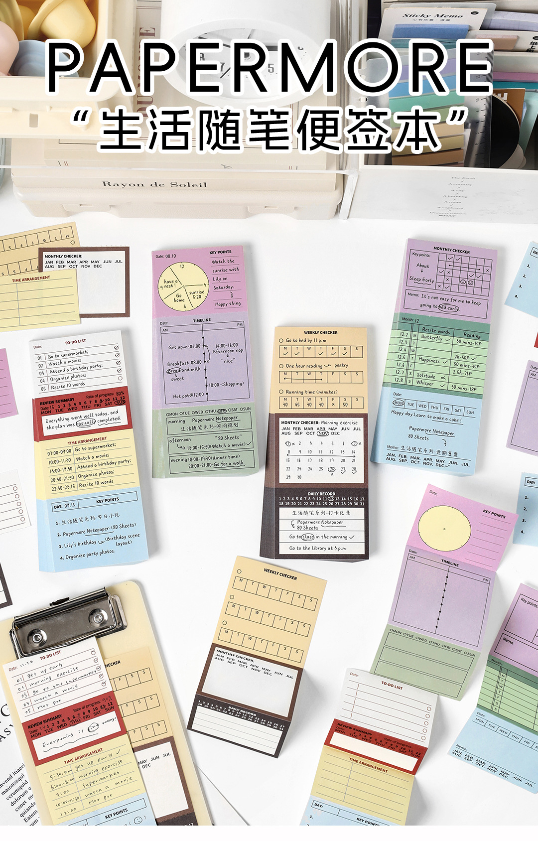 Papermore-Life Essay 시리즈 쓰기 가능한 노트 일정 주 계획 목록 80 펀치 카드스토어 가기