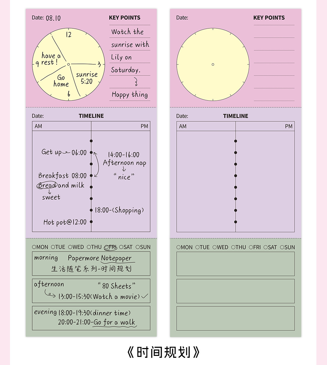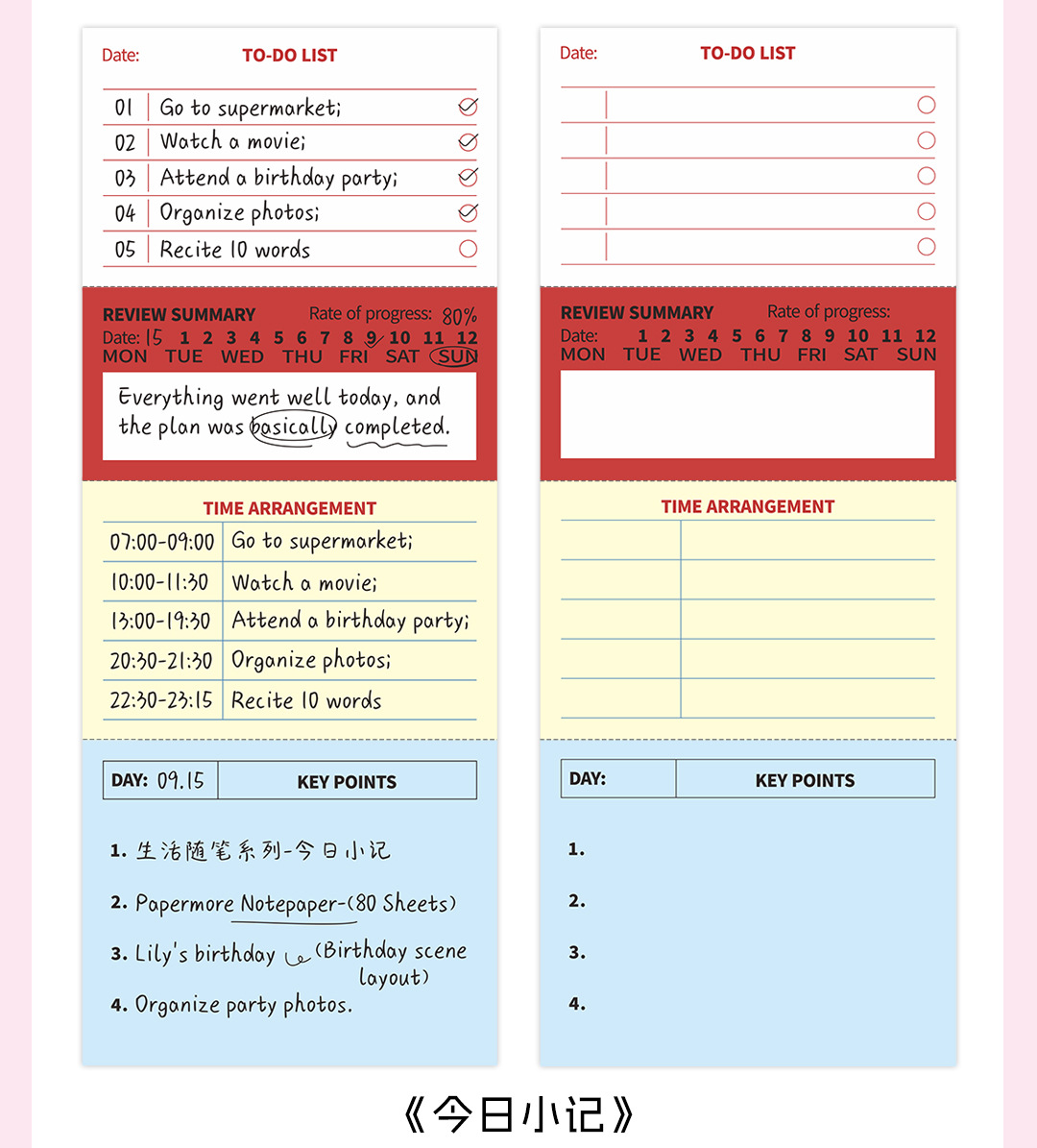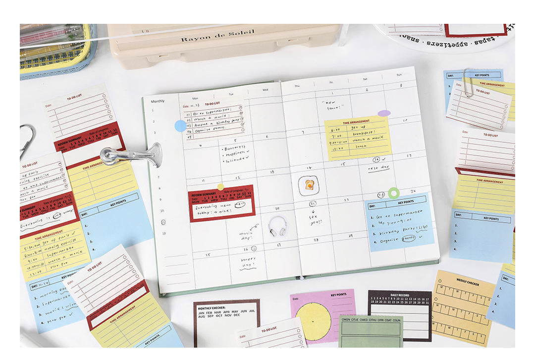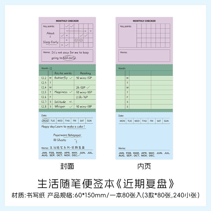 Papermore-Life Essay 시리즈 쓰기 가능한 노트 일정 주 계획 목록 80 펀치 카드