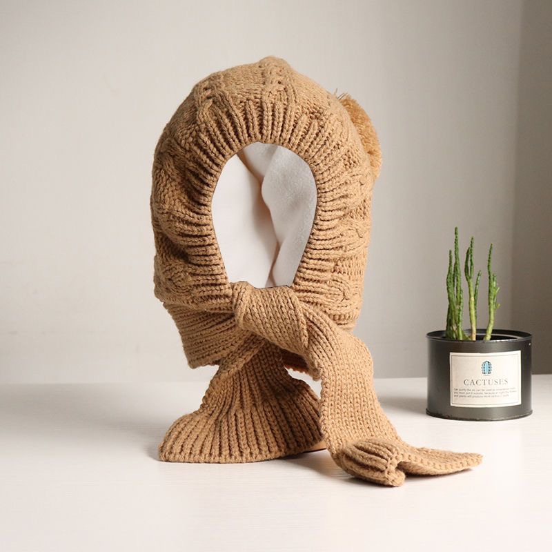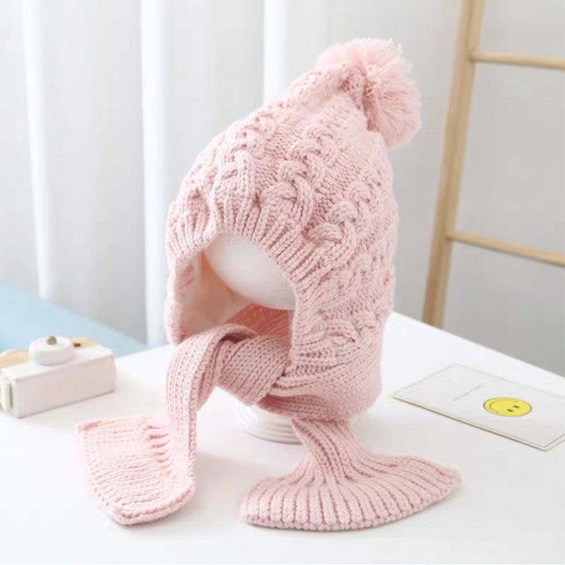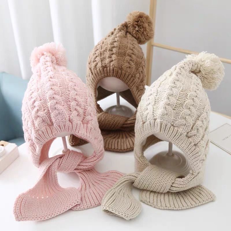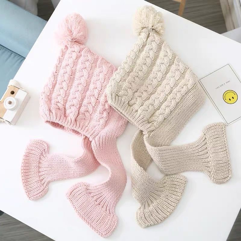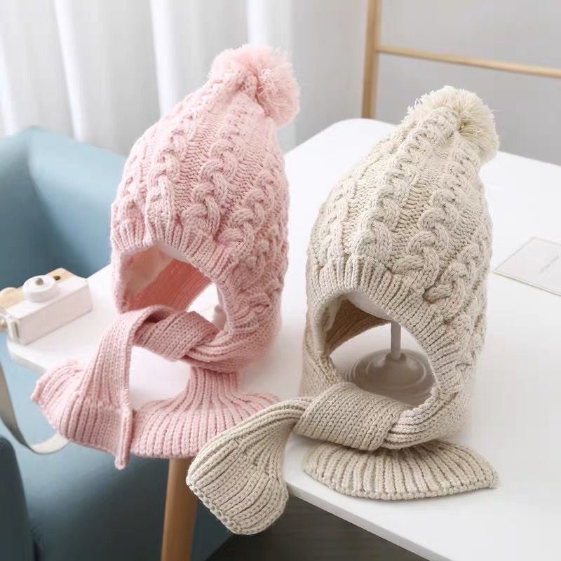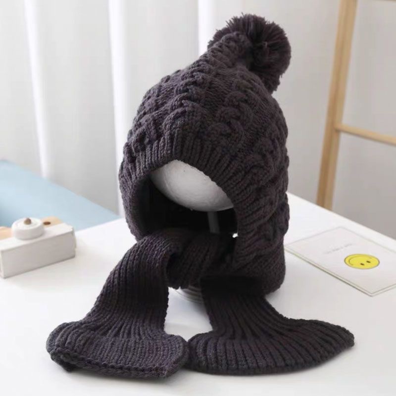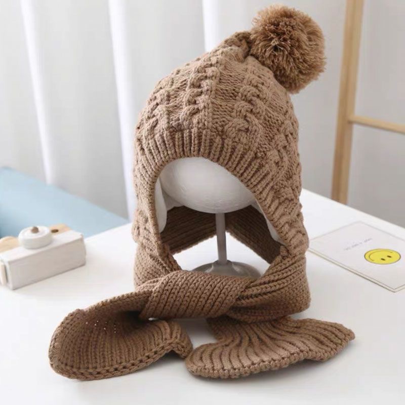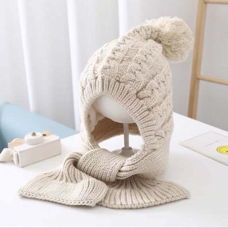 어린이 모자 스카프 통합 니트 양모 모자 가을과 겨울 소년과 소녀 어린이 아기 따뜻한 귀 보호 발가락 모자