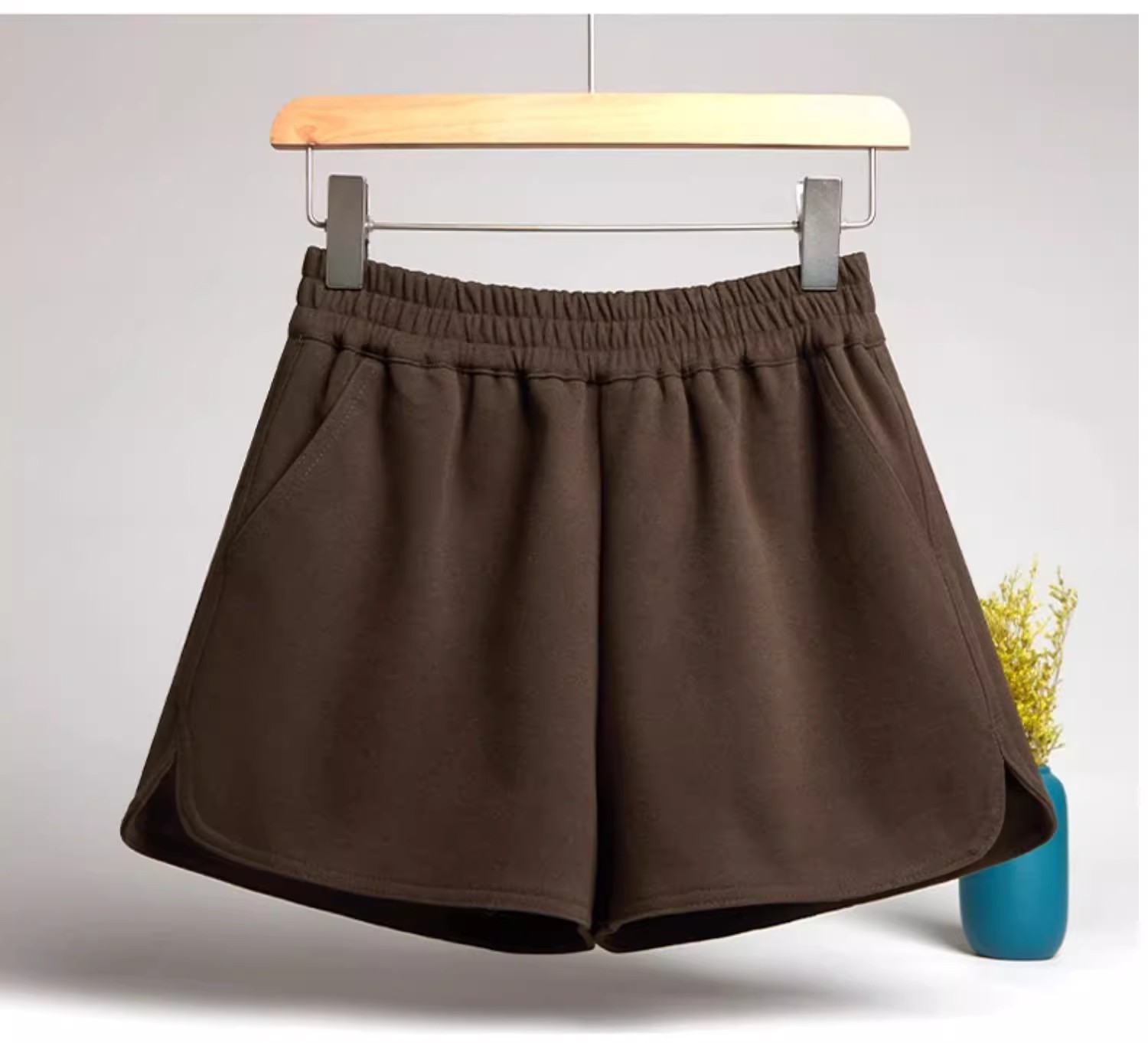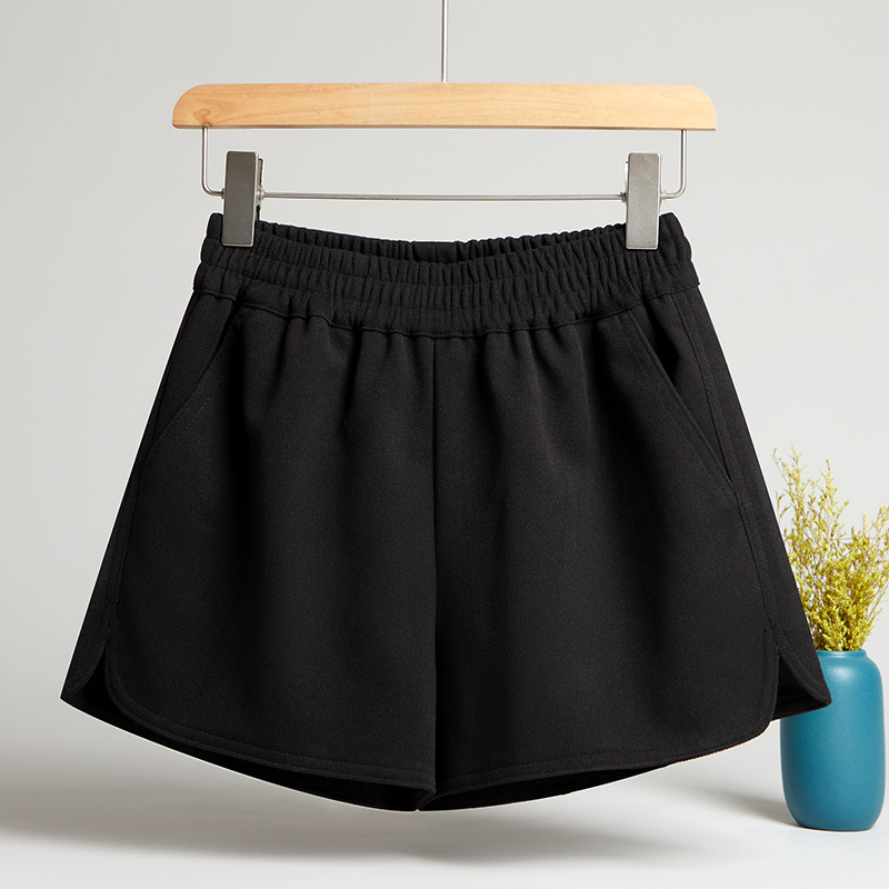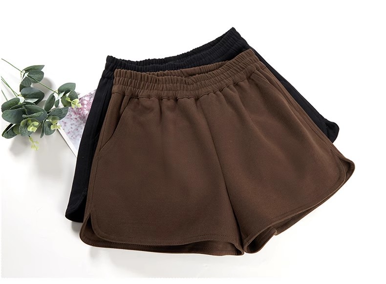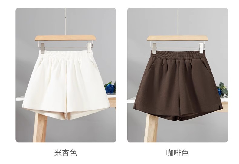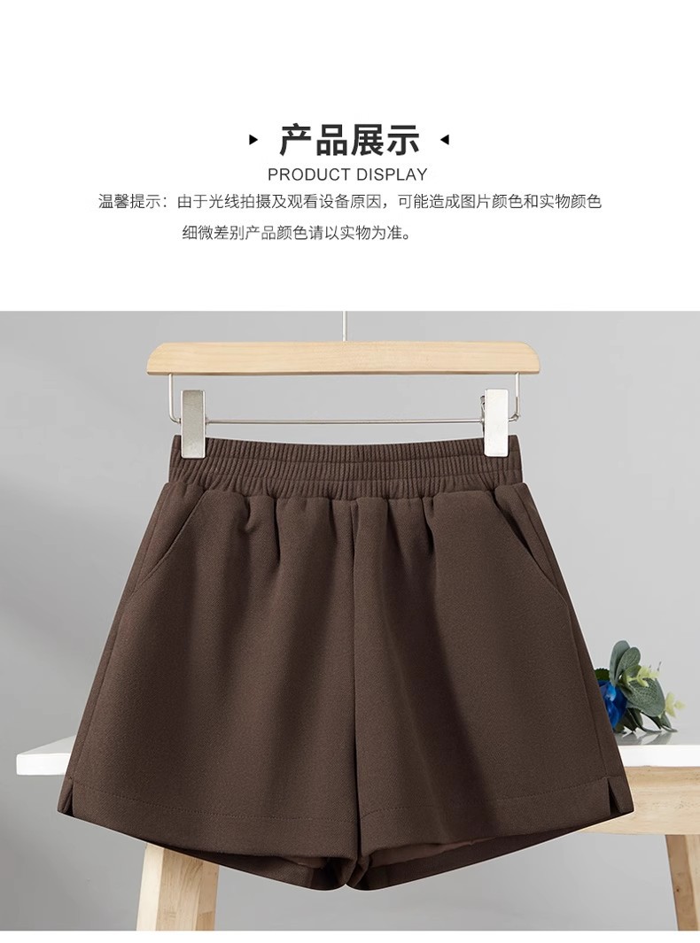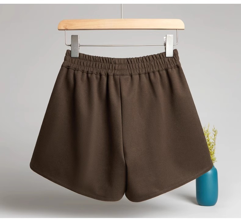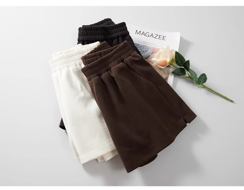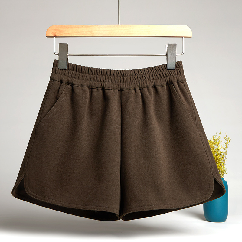 모직 반바지 여성용 가을 겨울 아이보리 스트레칭 허리 작은 슬롯 느슨한 외부 착용 A 라인 와이드 레그 캐주얼 부츠 바지스토어 가기