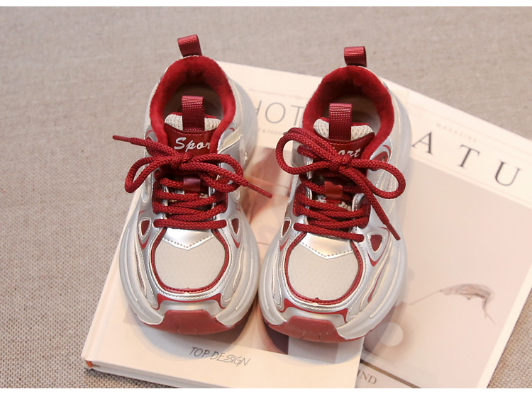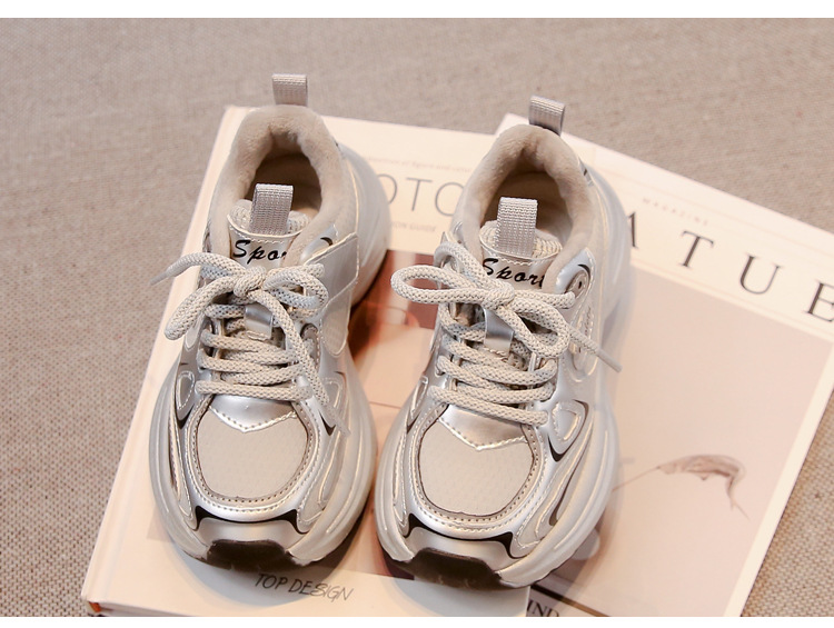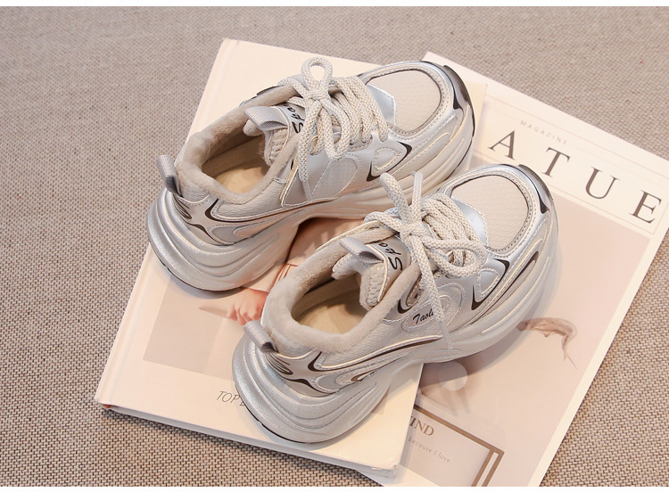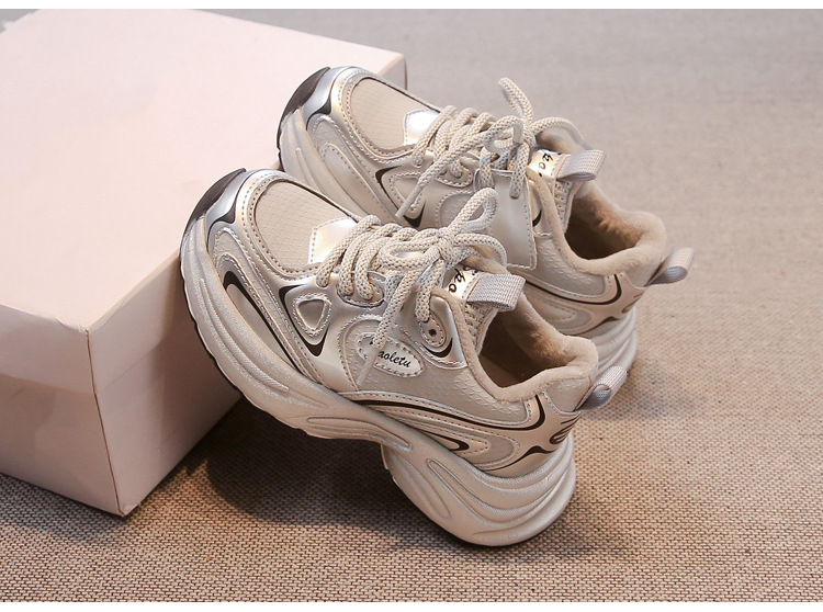 Jiwangfeng 소녀 운동화 2024 가을과 겨울 새로운 따뜻한 신발 어린이 기모 아버지 신발 소년 신발 겨울스토어 가기
