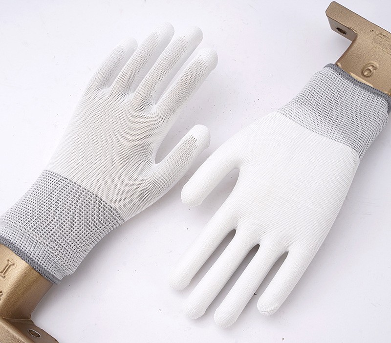 PU 손가락 코팅 손바닥 장갑 정전기 방지 미끄럼 방지 나일론 탄소 섬유 먼지없는 작업 코팅 노동 보호 장갑 도매
